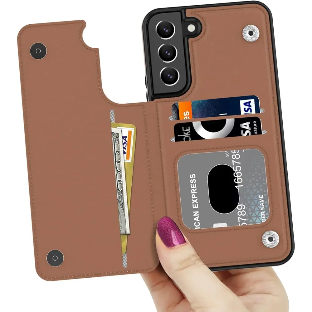 LETO Galaxy S22 Case,Luxury Flip Folio Leather Wallet Case Cover 6.1" Brown