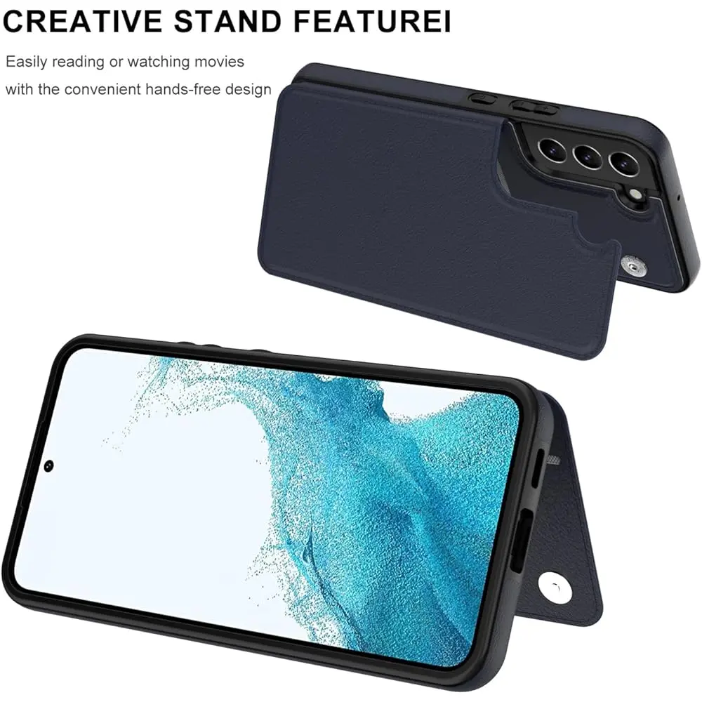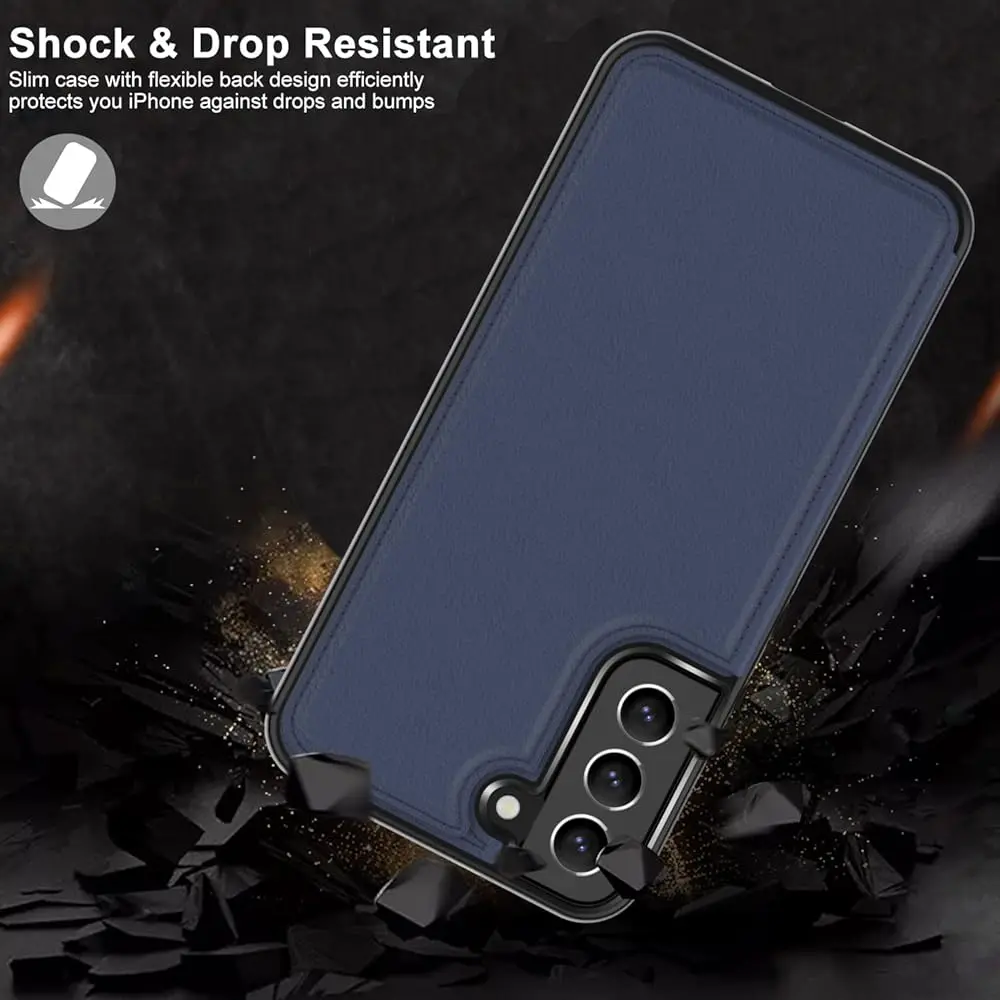 LETO Galaxy S22 Case,Luxury Flip Folio Leather Wallet Case Cover 6.1" Navy Blue
