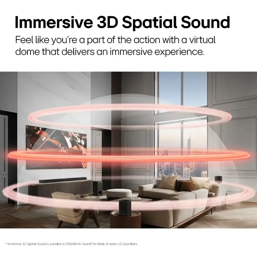 The LG 5.1.1-Channel S70TR Home Theater Soundbar delivers a truly immersive experience with its 5.1.1-channel setup, enhanced by Dolby Atmos for cinematic, multi-dimensional audio. Equipped with a wireless subwoofer and rear speakers, it provides powerful bass and expansive sound coverage. The innovative WOW Orchestra technology ensures synchronized, high-quality audio for a richer listening experience. With Bluetooth connectivity, you can effortlessly stream your favorite music, all wrapped in a sleek black design that complements any modern home setup