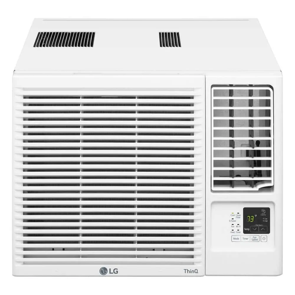 The LW8021HRSM is the smart solution to keeping your home comfortable, no matter the weather. With LG ThinQ technology, you can control your air conditioner via your smartphone or use voice commands with Alexa or Google Assistant for hands-free control. This unit is perfect for cooling medium-sized rooms up to 330 sq. ft., and the supplemental heat option provides warmth on cooler days. With 2 cooling, heating, and fan speeds and a 24-hour timer, you can easily create your ideal cooling schedule. The 4-way air deflection ensures airflow is directed where it's needed, whether cooling, heating, dehumidifying, or circulating air. If the power goes out, the auto-restart feature will automatically resume operation once power is restored. Additional features include a remote control, an easy window installation kit, a removable washable filter, and a filter check reminder.