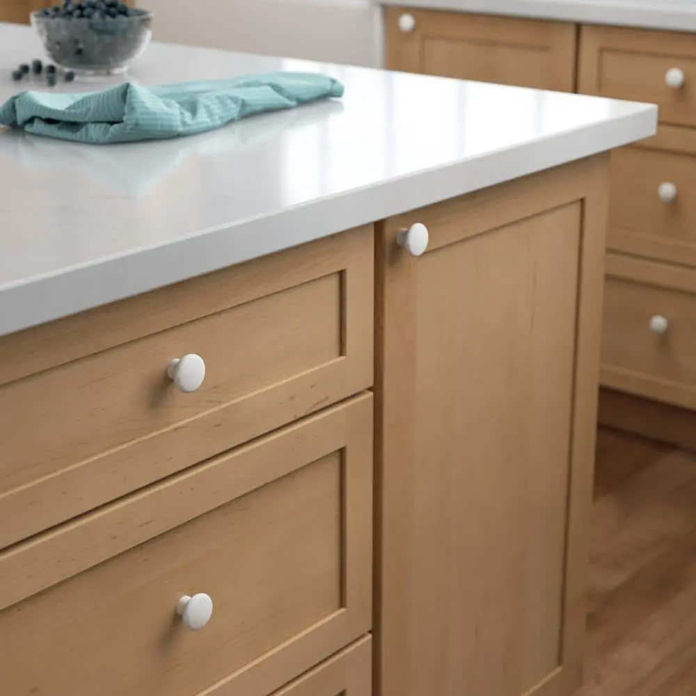 The Ceramic Mushroom knob from Liberty offers a simple yet elegant design. It’s a perfect fit for bathroom cabinets or dark wood kitchen cabinets, adding a touch of timeless charm to your space. Installation hardware is included for quick and easy setup.