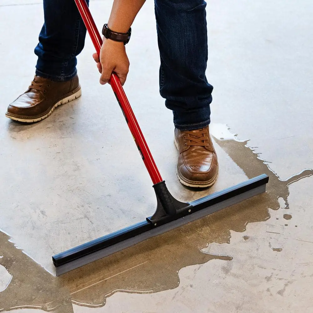 The Libman 24 in. Soft Rubber Floor Squeegee efficiently removes water, chemicals, and mud from various surfaces. Its synthetic rubber blade is resistant to oils and petroleum-based liquids, including gasoline, making it ideal for use in auto body shops and garages. Perfect for cleaning smooth or semi-smooth surfaces, this squeegee is a must-have tool for your cleaning arsenal.