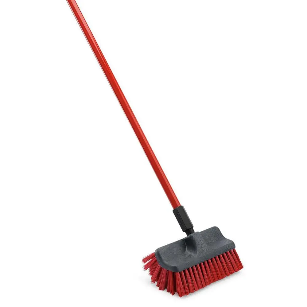 The Libman scrub brush is perfect for cleaning floors, walls, and especially tile baseboards in kitchens and restaurants. Its bi-level, dual-surface brush head makes it easy to scrub both the floor and the baseboard where the floor meets the wall. This versatile scrub brush can also be used as a standard floor scrub brush, as well as for cleaning outdoor patio pavers, pools, or decks. The long steel handle eliminates the need to bend over, making it ideal for scrubbing floors and grout lines with ease.