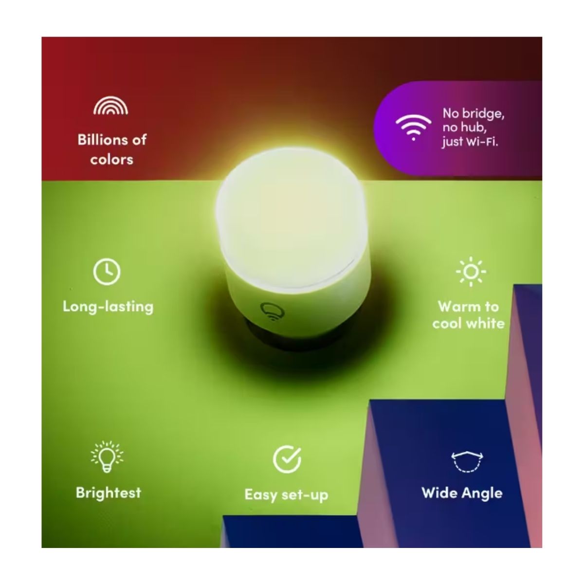 The LIFX Color A19 stands out as the most luminous smart product from LIFX, delivering an impressive 1100 lumens of brightness. Utilize vibrant blues to maintain alertness while working from your home office. Transition to a soothing pink shade to amplify feelings of tranquility during your personal relaxation time.
