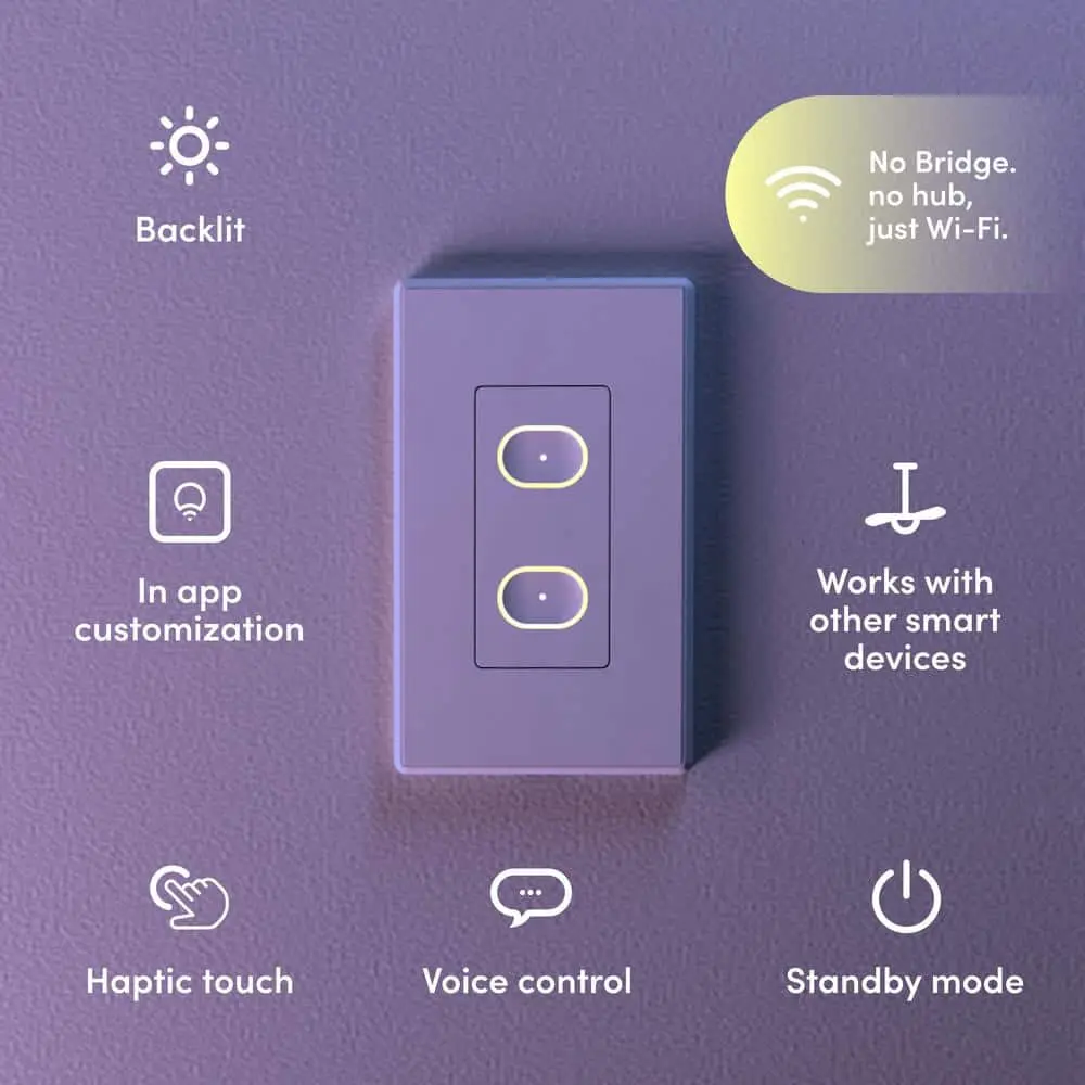 The LIFX Smart Switch combines the ease of a standard wall switch with advanced smart technology, offering both style and functionality. Available in black or white finishes, it features a sleek glass design with two haptic touch buttons for effortless control. This switch allows you to manage smart lights, traditional lightbulbs, and even other smart devices, all without the need for a complete smart lighting system. Whether controlling a regular bulb or a LIFX smart light, you can enjoy features like on/off scheduling, voice control, and more. With Wi-Fi and a 2.4GHz connection, it’s easy to set up with no hub or bridge required. Compatible with Alexa and Google Home, the LIFX Smart Switch brings smarter control to your home. Plus, it maintains a standby mode for lights, allowing continuous control whether they are on or off.