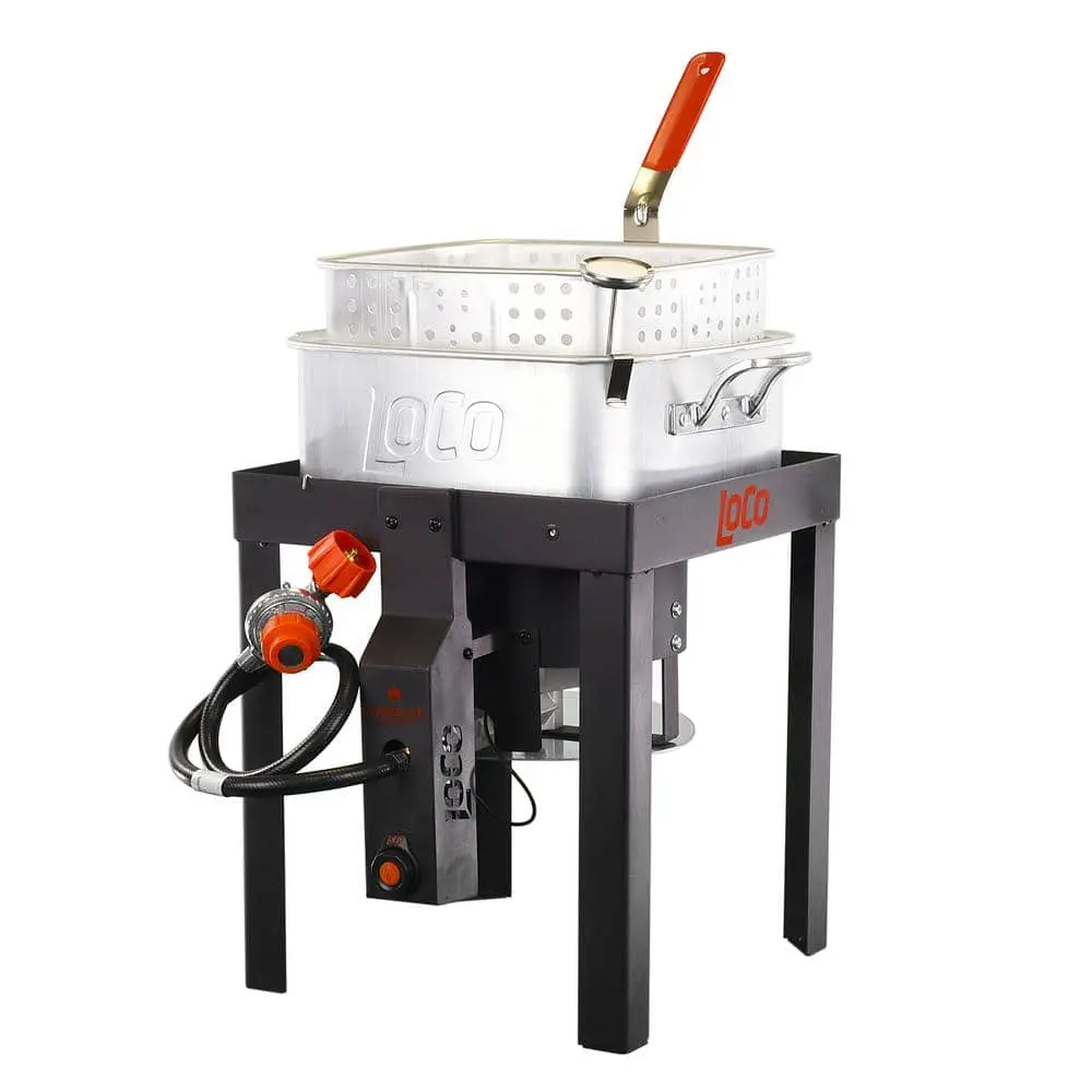 CSA-approved and equipped with a regulator and hose for safe operation, the LOCO SureSpark 12 Qt. Fish Fryer is a reliable choice for outdoor chefs who value both performance and peace of mind.