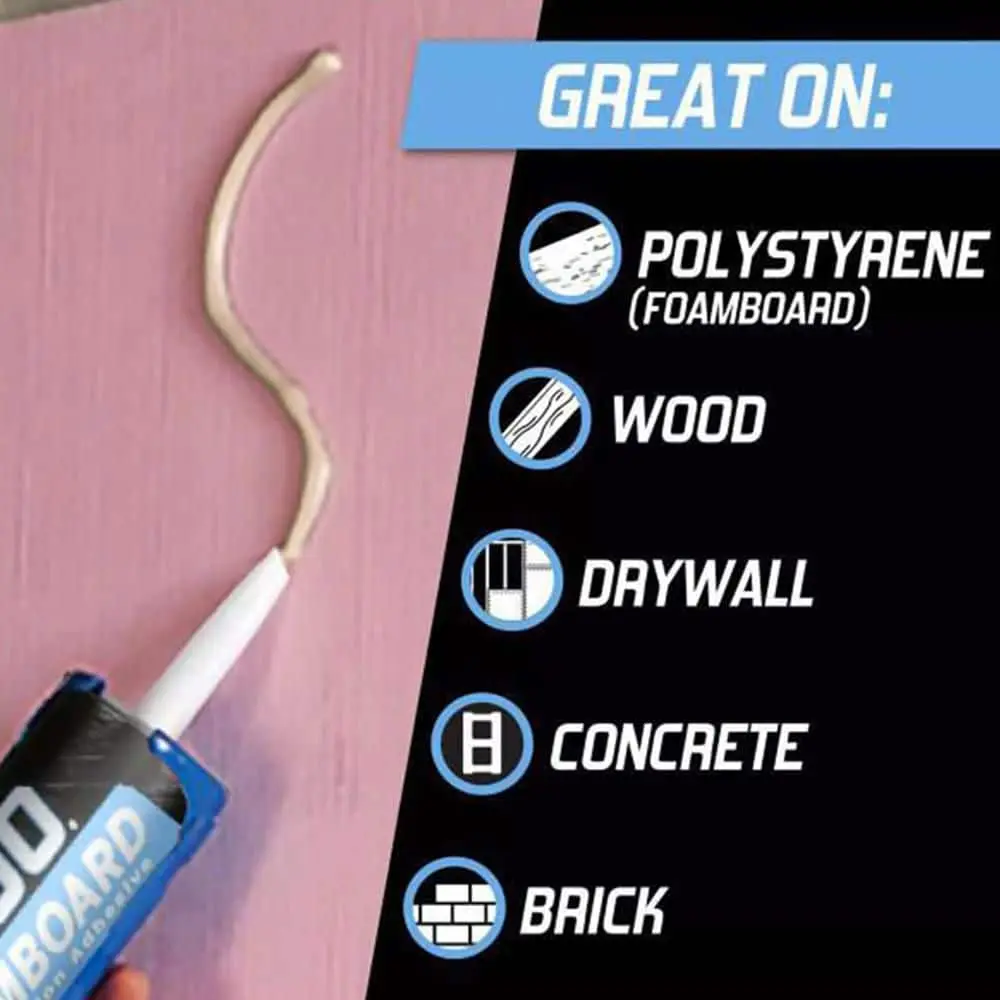 Loctite PL 300 Foamboard 10 oz. Latex Construction Adhesive offers a strong, reliable bond for a variety of materials. The 10 oz. cartridge allows for easy application, while the latex-based formula ensures a durable and lasting bond. Its blue color makes it easy to identify and ensures a clean, controlled application. This adhesive works well on foamboard, drywall, wood, and more, making it versatile for different projects. With its water-resistant properties, it’s ideal for use in various environments. The low-odor formula is safer for indoor use, and its fast-setting nature allows for quick, efficient bonding