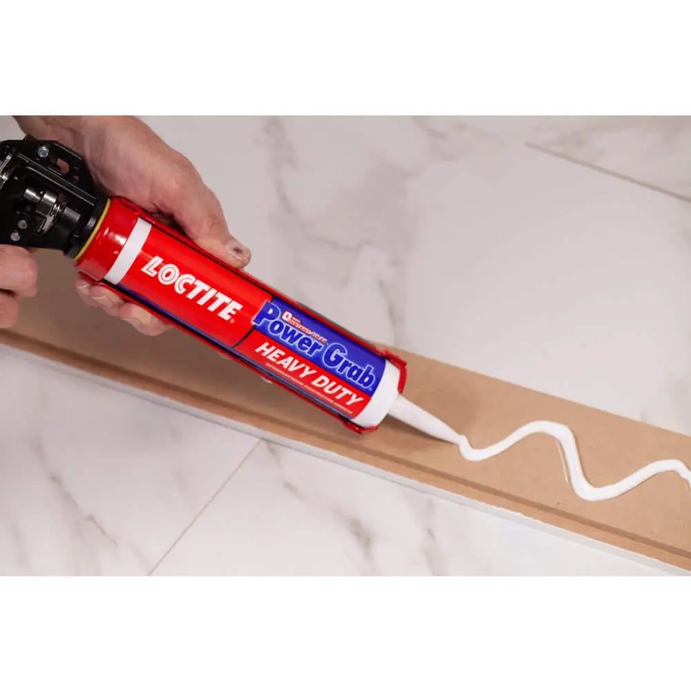 Loctite Power Grab Heavy Duty Instant Grab 9 oz. Latex Construction Adhesive is designed for strong, reliable bonding on a variety of surfaces. The 9 oz. cartridge offers convenient application for your projects. Featuring an instant grab formula, it creates an immediate bond without the need for clamping, making it perfect for quick fixes. This heavy-duty adhesive delivers long-lasting results, while the latex-based formula ensures easy cleanup after use. With its white color, it provides a clean and discreet application. Ideal for both indoor and outdoor projects, it works on wood, drywall, ceramic, and more