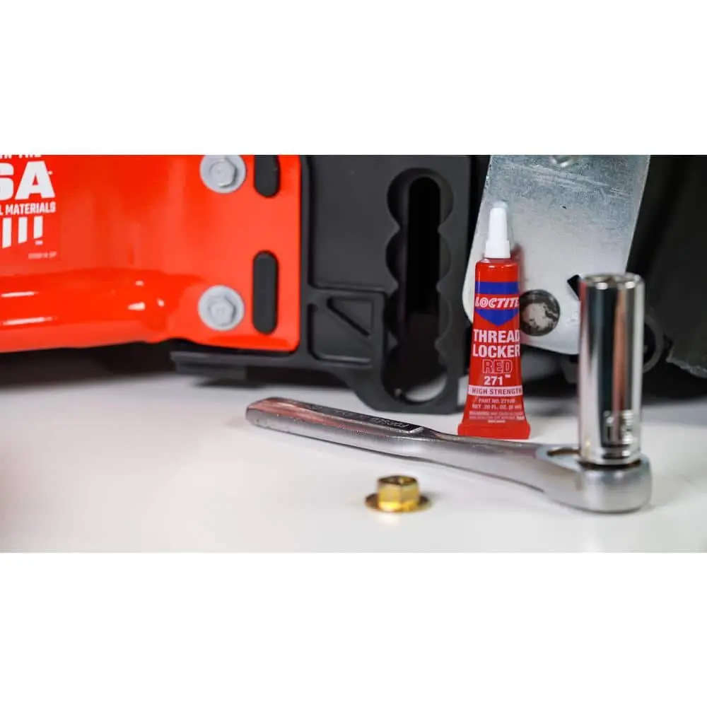 The Loctite Threadlocker 271 Red Permanent Adhesive delivers high-strength, long-lasting hold for nuts and bolts, preventing loosening due to vibration and shock. Designed for heavy-duty applications, it ensures secure fastening on metal fasteners in demanding environments. This adhesive is high temperature resistant, withstanding heat up to 300°F (149°C) for reliable performance. The easy-application 0.20 oz. bottle provides precise and controlled use, making it a go-to solution for permanent, professional-grade fastening