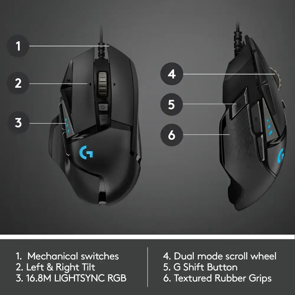 Enhance your gaming experience with the Logitech G502 HERO Core Wired Gaming Mouse. Featuring the advanced HERO 25K optical sensor, this high-performance mouse delivers exceptional tracking accuracy and precision with adjustable sensitivity ranging from 200 to 25,600 DPI. Customize your setup with fully programmable buttons, RGB lighting synchronization via Logitech G LIGHTSYNC technology, and a tunable weight system for optimal balance and feel. Designed for gamers of all styles, the G502 ensures responsive gameplay with mechanical switch button tensioning and ultra-fast tracking.