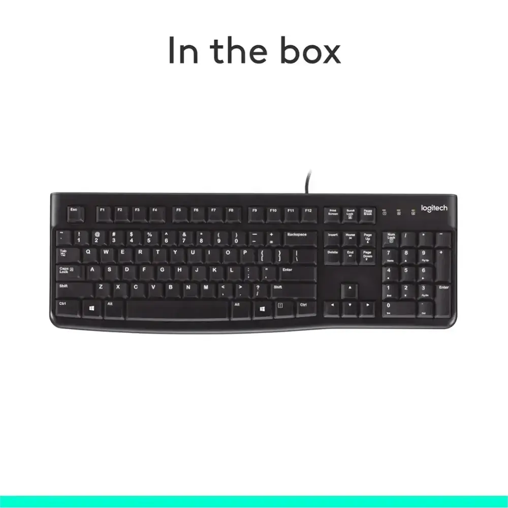 The Logitech Keyboard K120 offers a comfortable and quiet typing experience with its low-profile keys and standard layout, including full-size F-keys and a number pad. Designed for durability, this keyboard features a spill-resistant design, keys that can withstand up to 10 million keystrokes, and sturdy, adjustable tilt legs. Its sleek, thin profile not only looks good but is built to last. Setup is simple—just plug it into a USB port, and it’s ready to use right out of the box. The bold, bright white characters on the keys make them easy to read. As a product of Logitech’s renowned quality and reliability, this keyboard is perfect for both home and office use.
