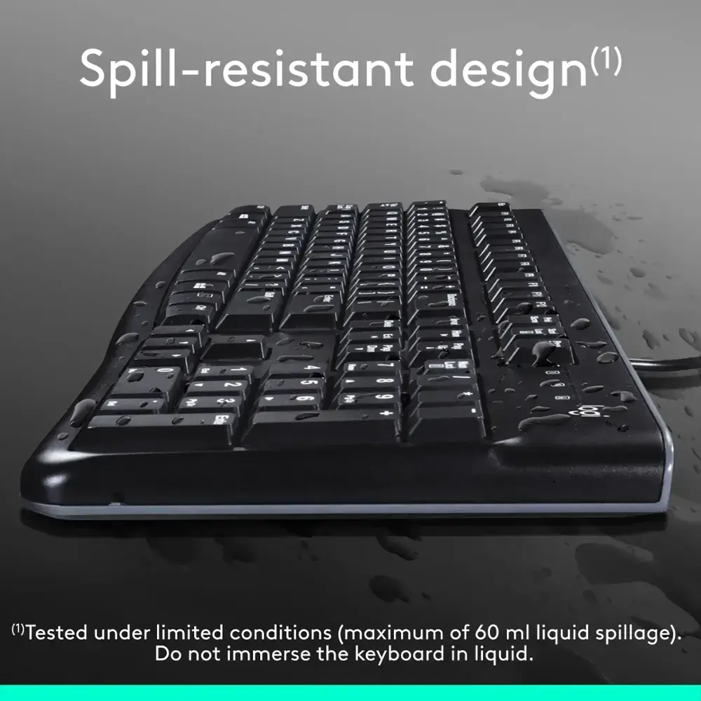 Tested under limited conditions (maximum of 60 ml liquid spillage). Do not immerse keyboard in liquid.