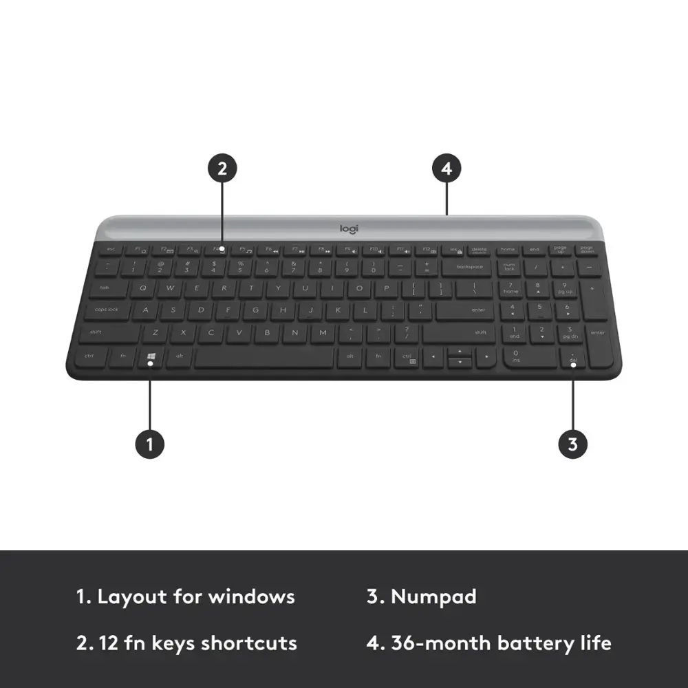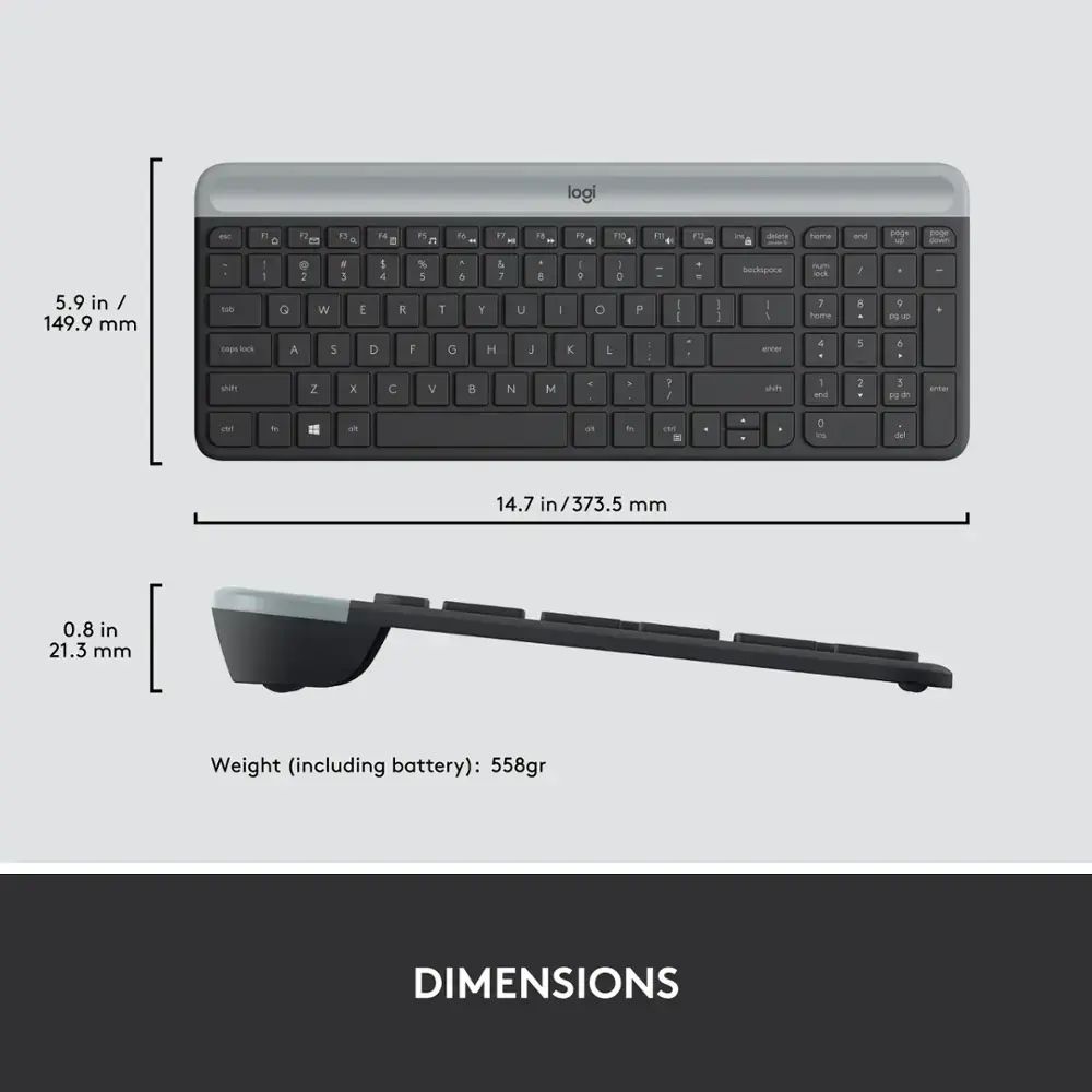 The Logitech MK470 Wireless Combo combines a slim, modern design with quiet performance to elevate your workspace. The compact keyboard features low-profile scissor keys and a number pad optimized for Windows, while the mouse offers high-precision optical tracking and a mechanical scroll wheel. Whether at the office or at home, the whisper-quiet keys and 90% noise-reduced mouse provide an ultra-quiet work environment.