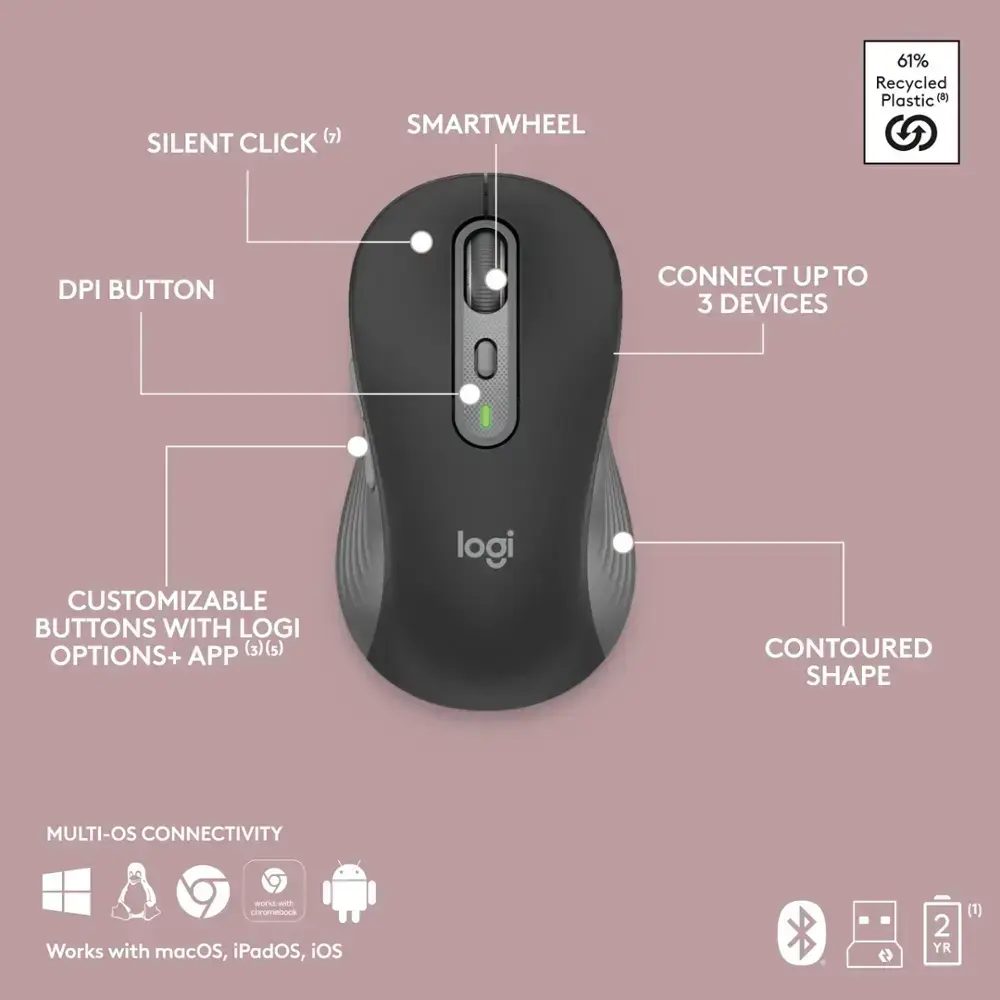 - Smart Scrolling: The M750 L Signature Plus wireless mouse for larger hands offers precise scrolling with the SmartWheel, letting you glide through long documents and web pages effortlessly.