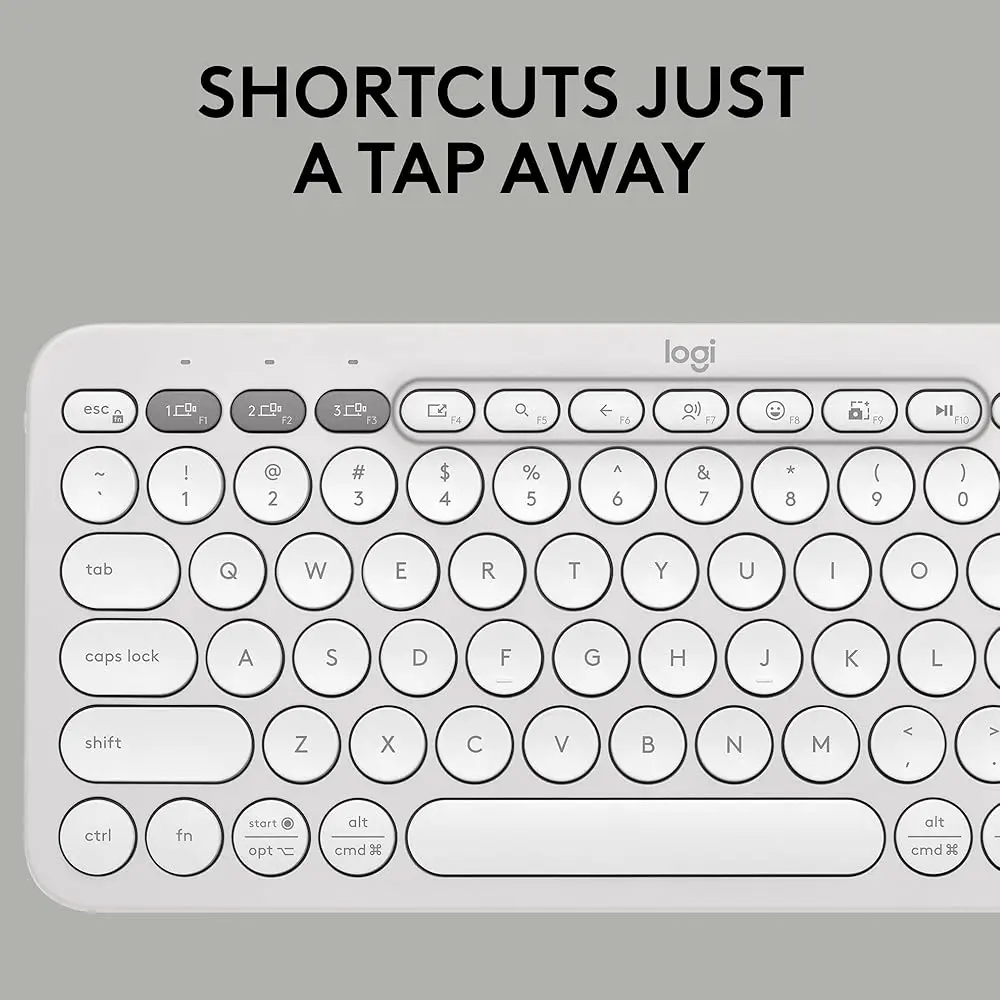 • Customizable Shortcuts: Access the emoji menu, dictation, screenshot, and more with Fn shortcut keys; personalize the 10 Fn keys with the Logi Options+ app.