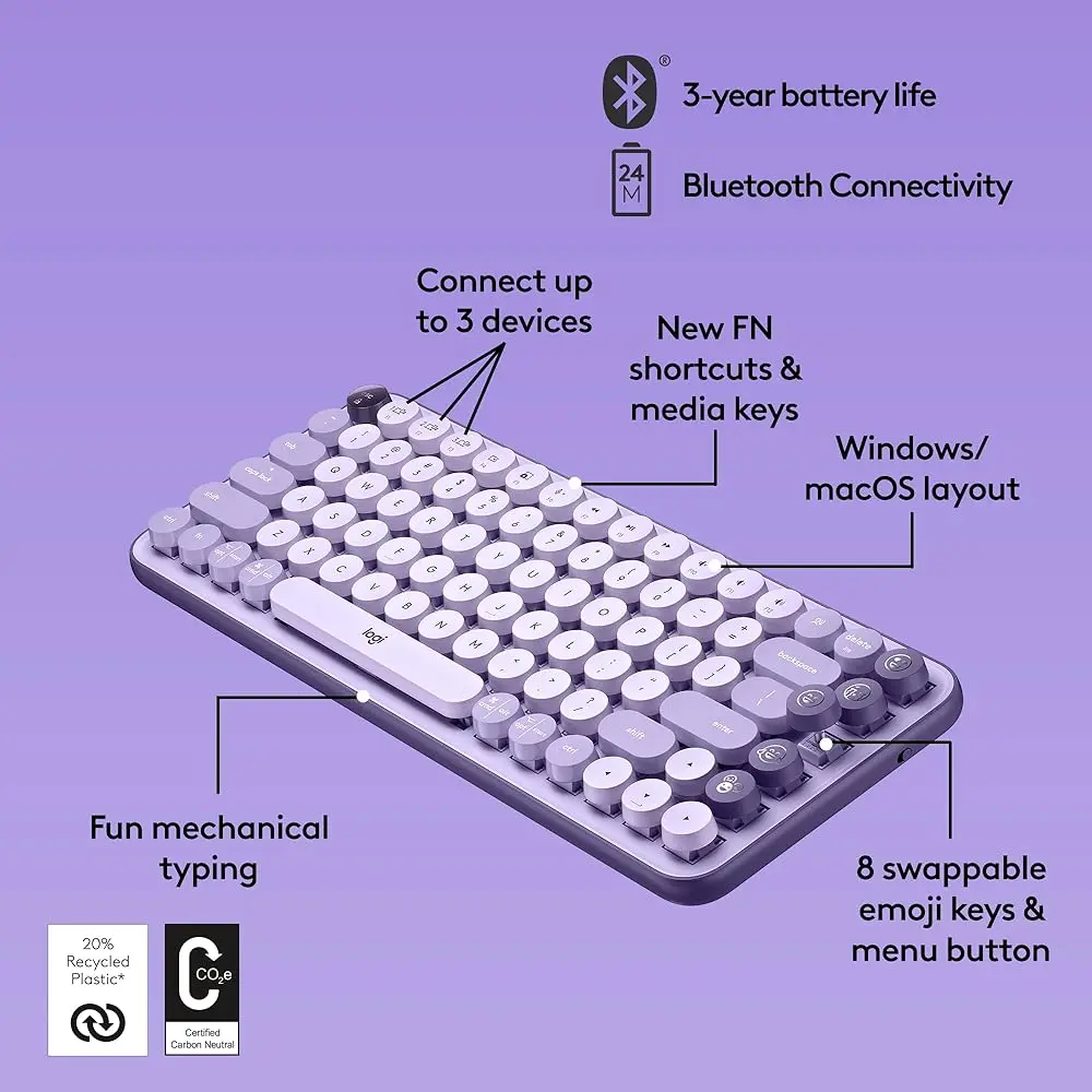 Logitech POP Mechanical Wireless Keyboard with Customizable Emoji Keys - Cosmos
