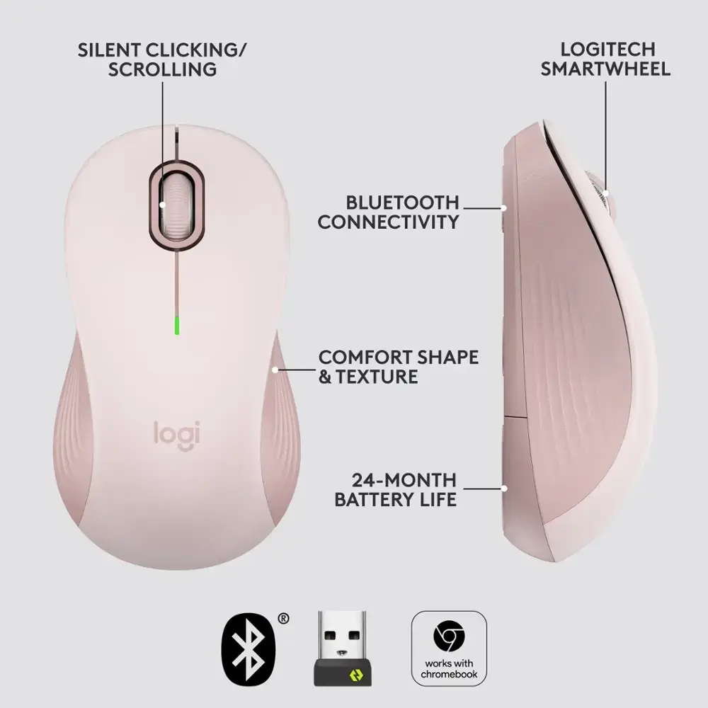 Enhance your productivity with a mouse designed for comfort and smarter scrolling. Featuring SmartWheel technology, you can enjoy precise line-by-line scrolling for documents or ultra-fast navigation for lengthy web pages. The mouse’s contoured shape and soft thumb area provide a comfortable fit, whether you have smaller or larger hands, allowing you to work for hours without discomfort. Logitech SilentTouch technology ensures 90% less click noise, creating a quieter workspace. Easily connect via Bluetooth or the Logi Bolt USB receiver, and enjoy up to 2 years of battery life on a single AA battery—no need for constant recharging.