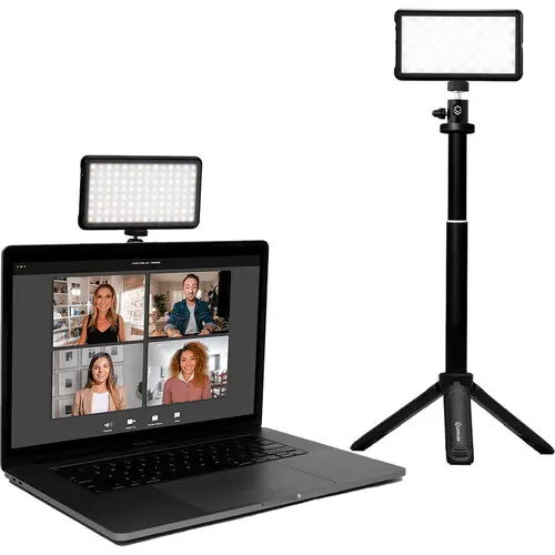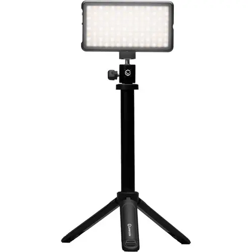 The Panel GO Bi-Color LED Light Panel Broadcast Lighting Kit from Lume Cube combines the compact Panel GO LED light with a desktop stand, a suction cup, and a 6' USB Type-C charging cable. Designed for video, photo, and webcam use, the Panel GO features a 3200 to 5600K adjustable color temperature, 112 bi-color LEDs, and 1 to 100% dimming in increments of 5%. The maximum brightness output is 1050 lux when measured at 1.8'. An intelligent LCD on the rear of the Panel GO displays the color temperature, brightness level, remaining runtime, and battery level. At 100% brightness, the light runs for approximately 1.3 hours, and at 50% for 2.3 hours. The Panel GO is charged via its USB Type-C port and can be used while charging. Design features include an aluminum build, a built-in diffusion panel, and side control buttons. The Broadcast Light Kit's included desktop stand telescopes from 6 to 30" and features a 360° rotating ball head for optimal positioning. The included suction cup can be used to mount the Panel GO on your desktop or laptop. Features Compact, slim LED for broadcast, webcam, or vlogging use LED panel with 112 bicolor LEDs Desktop stand extends from 6 to 30" 360° ball head for optimal positioning Desktop/laptop suction cup mount 3200 to 5600K adjustable color temperature CRI of 96+ for accurate color rendering 1 to 100% brightness 1050 lux brightness at 1.6' LCD panel displays color temperature, brightness level, remaining runtime, and battery level USB Type-C charging; can charge while in use Built-in diffusion panel