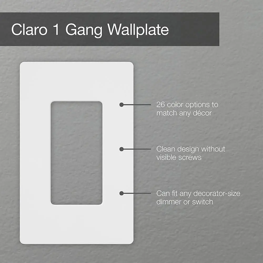 Claro decorative wall plates offer a sleek, elegant solution designed to complement your existing decorator-style dimmers, switches, and accessories. With a clean, screwless appearance, these wall plates mount flush to the wall. Their oversized design helps hide gaps around wall boxes and ensures a secure fit, regardless of wall condition. Installation is simple—just attach the back plate to the wall using the included screws, then snap the front plate on for a refined, finished look in minutes.