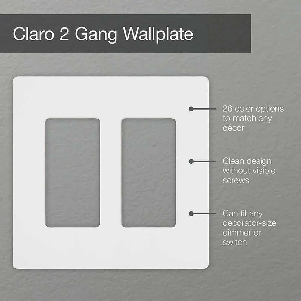 Claro decorative wall plates offer a sleek and stylish solution designed to complement your existing decorator-style dimmers, switches, and accessories. With a clean, screw-free design, these wall plates mount flush to the wall. The oversized design hides gaps around wall boxes, ensuring a secure and snug fit, regardless of wall condition. Installation is a breeze—simply separate the front and back plates, attach the back plate with the included screws, and snap on the front plate for a polished look in minutes.
