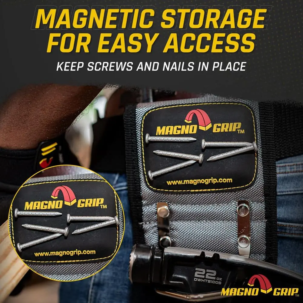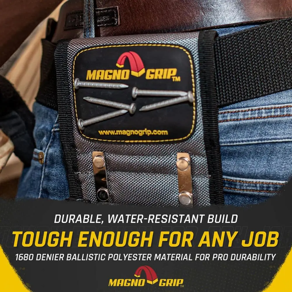 The MagnoGrip 5 in. Platinum Pro Magnetic Hammer Holster Tool Holder is built for durability with its high-quality, heavy-duty construction, ensuring long-lasting performance. The magnetic design securely holds a hammer and other metal tools, providing easy access when needed. With its compact 5-inch size, the holster allows for quick tool retrieval without unnecessary bulk. The reinforced belt loop ensures a secure attachment for hands-free carrying, while its lightweight design offers comfort and mobility, making it the perfect tool holder for professionals on the go