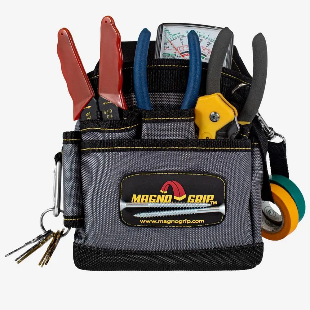 The MagnoGrip 9-Pocket Magnetic Maintenance Tool Pouch is built for efficiency and durability with its heavy-duty, wear-resistant construction. Featuring a 9-pocket design, it offers ample storage and organization for essential tools. The built-in magnets securely hold small metal tools, screws, and fasteners for quick access, while the quick snap pencil holder ensures easy reach for marking tools. Designed for hands-free convenience, the reinforced belt loop provides a secure fit, making it ideal for professionals on the go. Lightweight and portable, this tool pouch enhances productivity and ease of movement