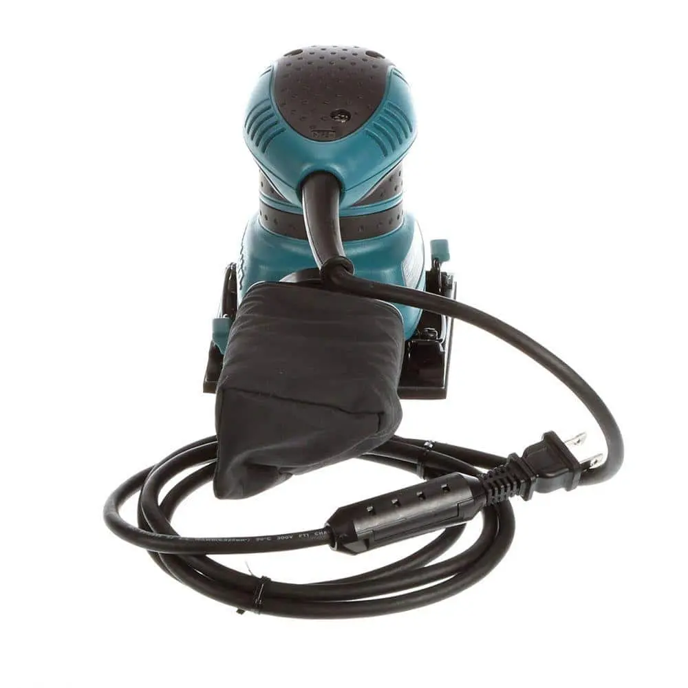 The Makita 1/4 Sheet Finishing Sander is perfect for woodworkers and finish carpenters tackling a variety of finish-sanding tasks. It is powered by a 2 Amp motor that delivers 14,000 orbits per minute, ensuring fast and smooth finishes. The sander is designed for durability, featuring a rubber-sealed switch to protect against dust and all-ball bearing construction that reduces vibration and noise.