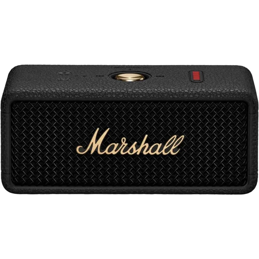 The Marshall Emberton III Portable Bluetooth Speaker delivers Powerful Sound with rich, clear audio and deep bass, all packed into a compact and stylish design. Equipped with Bluetooth 5.1, it provides Reliable, High-Quality Wireless Connectivity for seamless music streaming. Enjoy up to 30 Hours of Playtime on a single charge, making it perfect for extended use. Its IP67 Rated Water & Dust Resistance ensures durability for outdoor adventures and travel. Featuring the Classic Marshall Design with a sleek Black/Brass finish, this speaker offers a Multi-Directional Sound Experience that immerses you in 360° audio