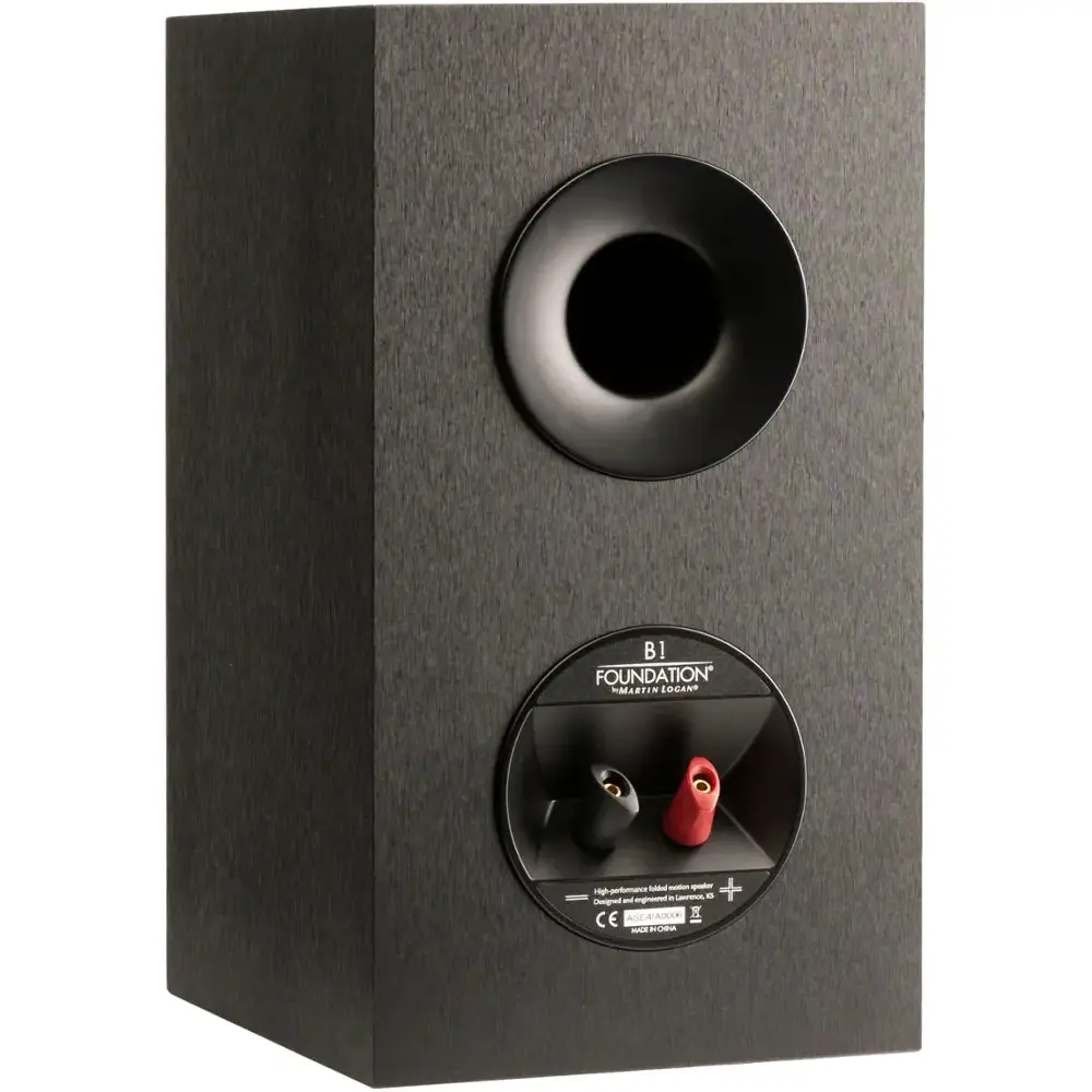 The MartinLogan Motion Foundation B1 2-Way Bookshelf Speaker offers a dynamic audio experience with its 2-way design, delivering clear and balanced sound across high and midrange frequencies. The 5.5” midbass driver ensures deep, natural bass and precise midrange tones, while the Folded Motion Tweeter provides accurate and crisp high frequencies for detailed sound. Its compact bookshelf size makes it an ideal choice for smaller spaces without compromising on performance. Finished in a sleek black finish, this speaker adds an elegant touch to any room. Designed for high-performance audio, it guarantees a rich and immersive listening experience.