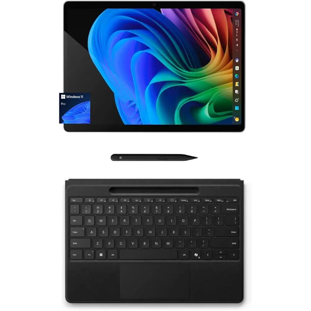 The Microsoft Surface Pro 11 Bundle combines powerful AI capabilities and sleek design for an exceptional computing experience. Featuring a 13" Copilot+ PC with Windows 11 Pro, this bundle includes 16GB RAM and a 256GB SSD, providing seamless multitasking and fast performance. The Snapdragon X Plus processor ensures optimal power efficiency and smooth operation, while the 13" PixelSense Flow display offers stunning visuals with vibrant colors and a 120Hz refresh rate. Included in the bundle are the Black Surface Pro Flex Keyboard and Surface Slim Pen, enhancing versatility and flexibility, whether used as a laptop or tablet. This all-in-one bundle is perfect for both work and creative tasks, with AI-powered features that improve productivity and ease of use.
