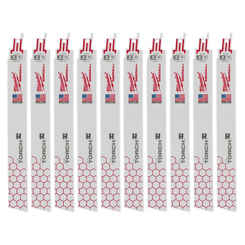 The Milwaukee 48-00-3788 9 in. x 18 TPI Torch Metal-Cutting Blades with Double Duty Upgrade offer maximum durability and extended life with an optimized tooth form. Tough Neck design prevents tang breakage, providing the strongest SAWZALL blade tang. The Grid Iron honeycomb pattern enhances rigidity, making these blades the stiffest for metal cutting. Ideal for tough, straight cuts.