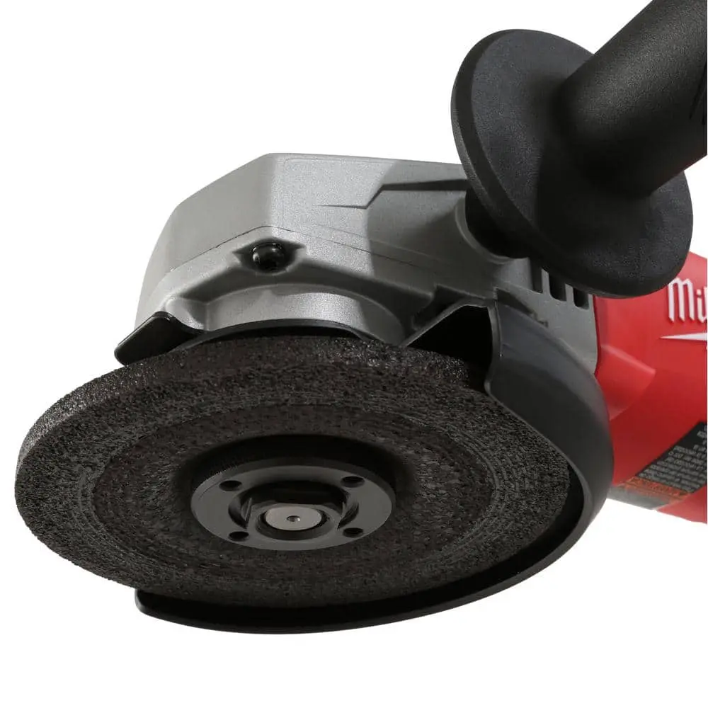 The 11 Amp 4-1/2 in. Small Angle Grinder (Paddle, Lock-On) offers up to 3X more durability and up to 50% more power compared to competitors. Powered by a 1,400 MWO motor, the 6142-30 is built to handle the toughest jobs, making it ideal for industrial use. Its grip circumference is 2 inches smaller than the competition, offering better control and reducing user fatigue during long hours of work. Milwaukee's Electronic Advantage features include Overload Protection to extend motor life, an Electronic Clutch to prevent tool bind-up and increase tool longevity, Line Lock-Out to prevent automatic startup after a power loss, and Soft Start functionality. This tool boasts a 100% tool-free design, allowing users to change all accessories—including hubbed products—without a wrench. Additionally, its tool-free, burst-resistant adjustable guard makes guard installations and adjustments quick and simple.