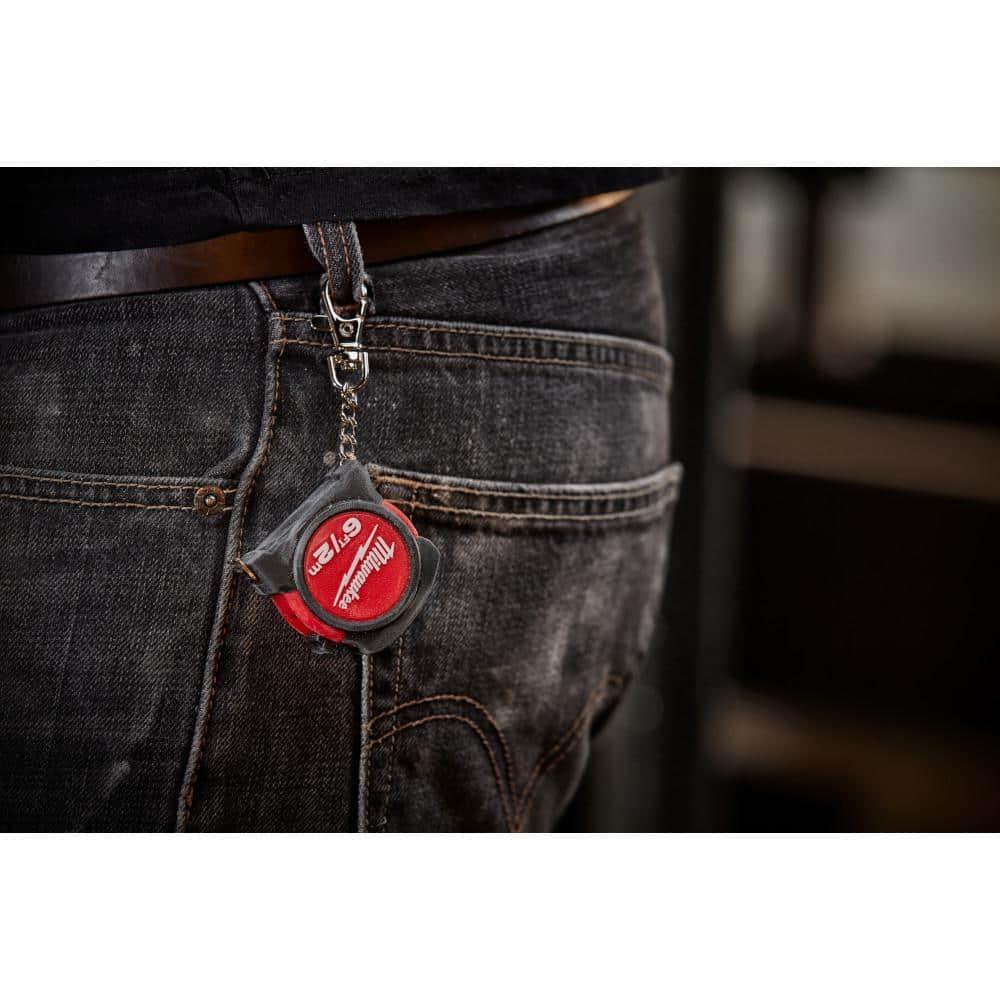 Introducing the newest addition to Milwaukee's tape measure collection: the 6 ft. keychain tape measure. This innovative tool boasts dual printing with both metric and imperial markings, a robust five-point reinforced frame, and a durable nylon-coated blade. Complete with a convenient keychain loop, it's designed to be your trusted companion wherever you go.