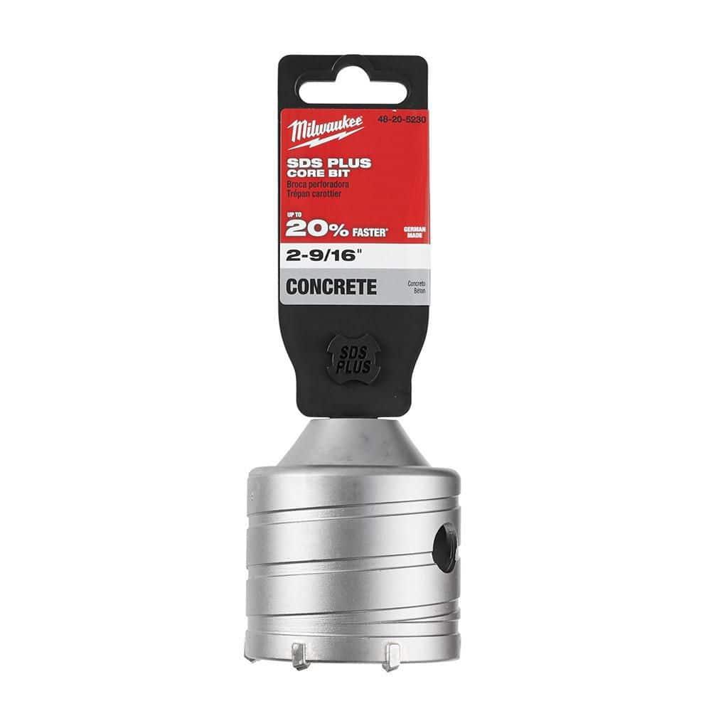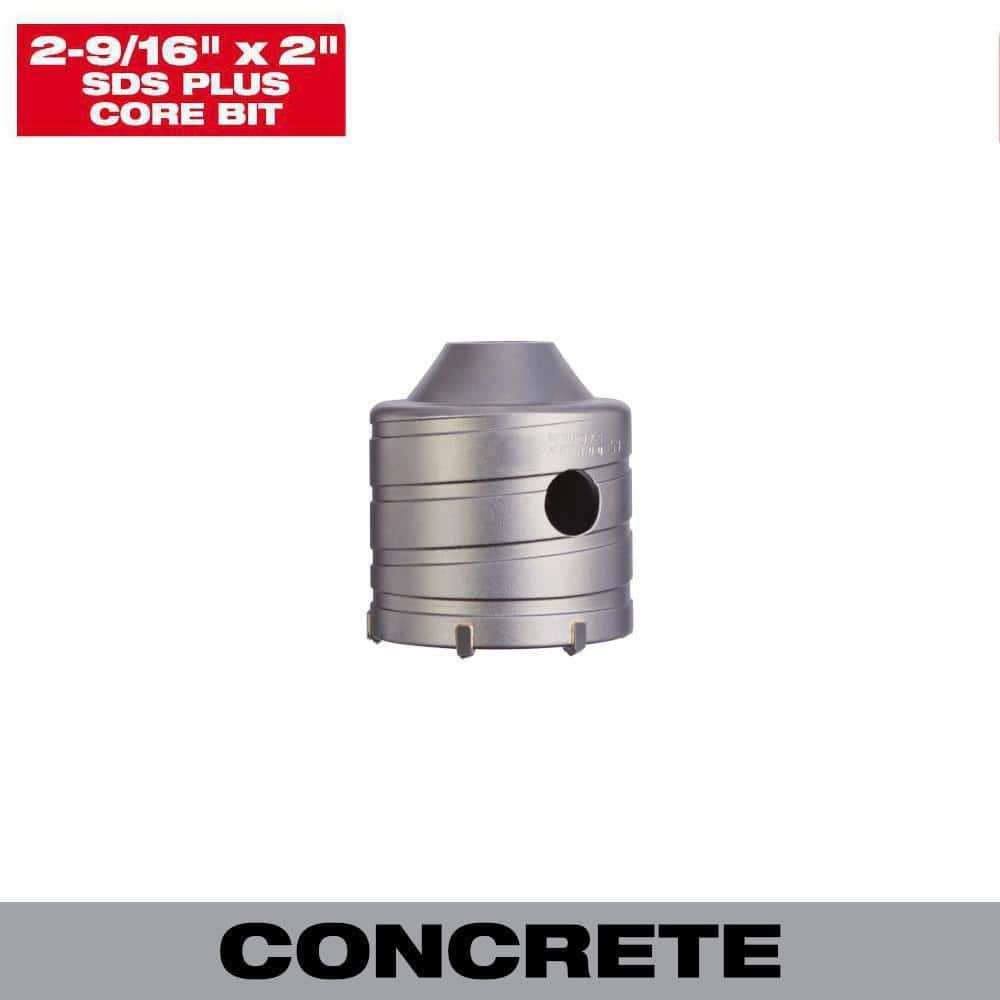 About This ProductMilwaukee SDS-Plus Masonry Core Bits are perfect for drilling large holes in brick, block, and concrete with SDS-Plus rotary hammers. Asymmetrical carbide teeth provide up to 20% faster drilling. Centering bits ensure precise alignment, and the versatile two-piece design allows for multiple core bit sizes with one adapter. The spiral core body reduces friction and aids in dust removal. For holes deeper than 2", the inner core must be removed before continuing.