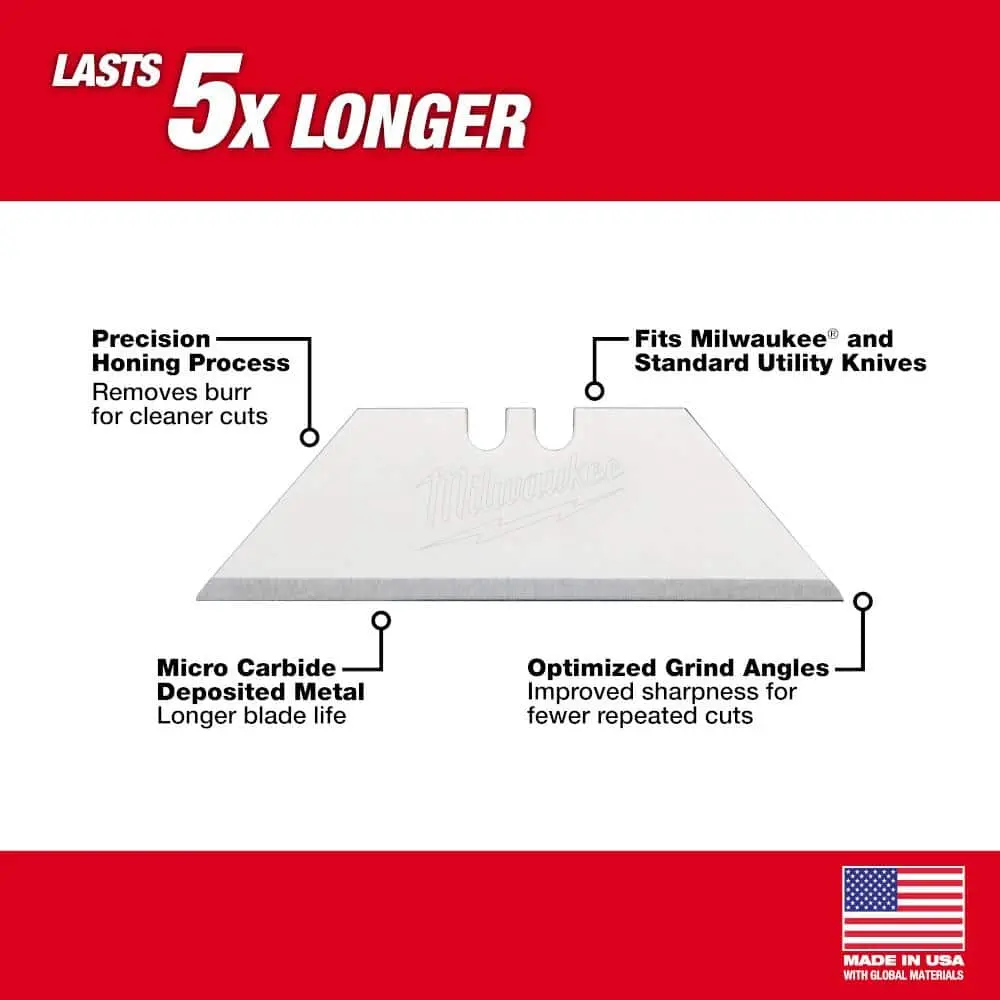 The Milwaukee General Purpose Utility Blades (5-Pack) are designed for durability and versatility, featuring high-quality steel for long-lasting sharpness. This set includes 5 utility blades, providing extended use and convenience. Perfect for a range of cutting tasks, these blades are general purpose, ideal for cutting through various materials. The snap-off design ensures easy blade replacement, while the blades are compatible with most utility knives, making them a versatile choice for both professional and DIY applications.
