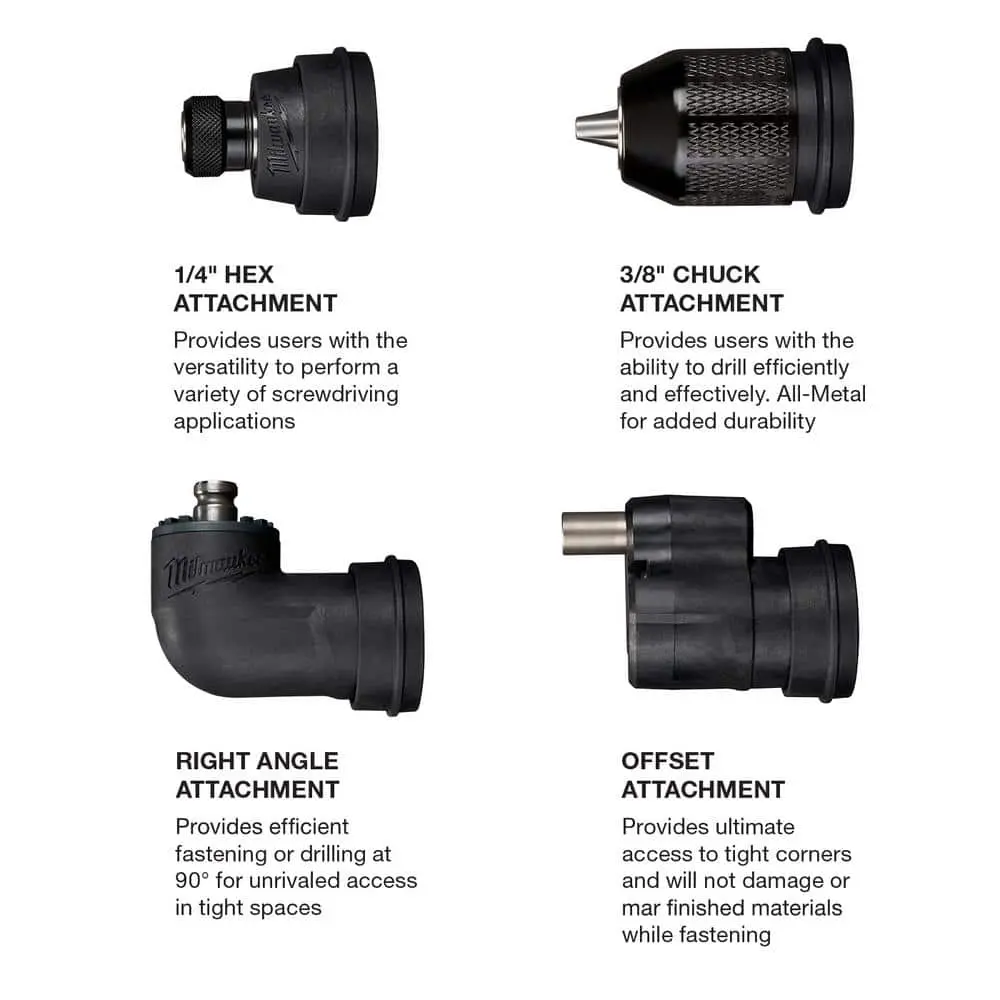 The Milwaukee M12 FUEL Installation Drill/Driver Kit offers a versatile 4-in-1 solution, delivering unparalleled access and control with a maximum torque of 300 in./lbs. It features 4 specialized heads – 3/8 in. Chuck, Offset Driver, 1/4 in. Hex, and Right Angle – that can be positioned in 16 different ways, making it perfect for challenging locations. This compact drill/driver has a slim profile and an inline grip for optimal control and access, while its magnetic bit holder keeps multiple bits secure for increased productivity. Powered by the Milwaukee M12 REDLITHIUM battery, the tool provides extended run-time and durability. The POWERSTATE Brushless Motor ensures efficient performance with 1600 RPM and 300 in./lbs. of torque, making it ideal for applications in electrical, cabinet installation, MRO, HVAC, automotive, and remodeling. The REDLINK Plus Intelligence protects the tool from overheating or overloading, ensuring a longer lifespan.
