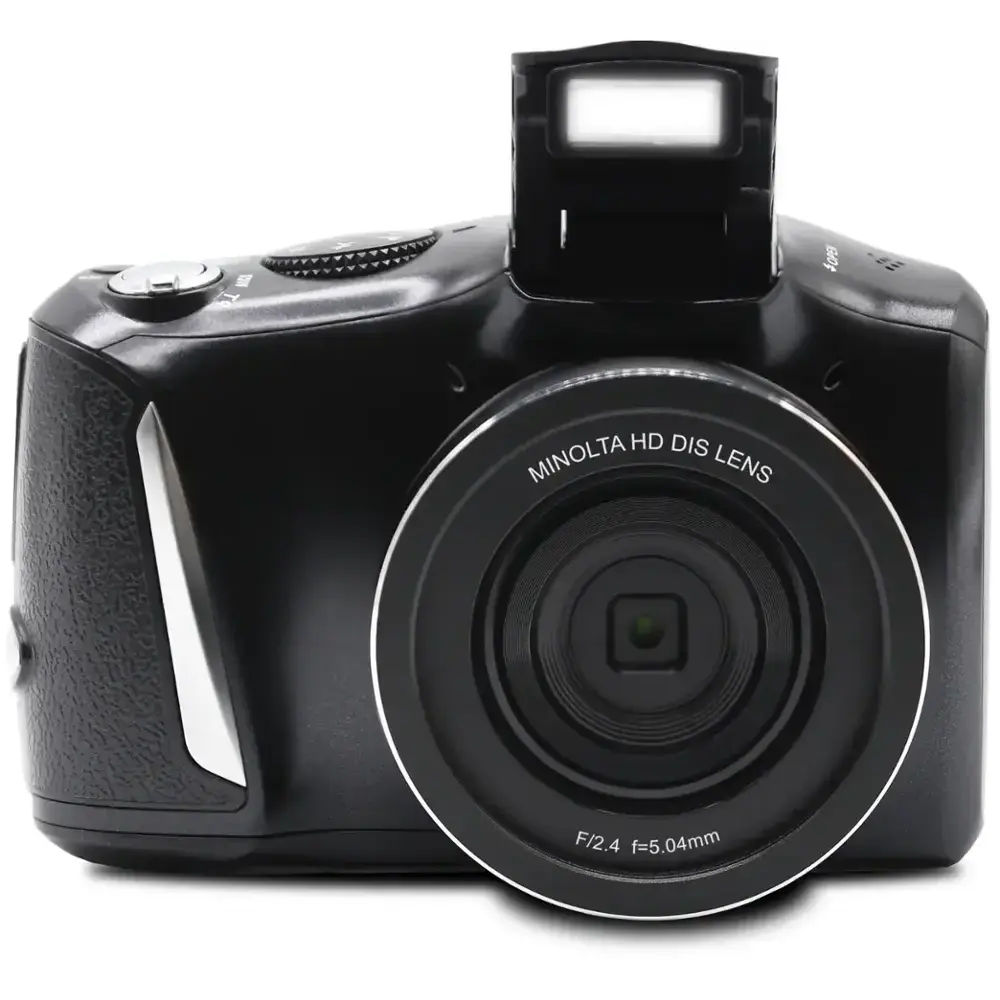 The Minolta MND50 is a compact and user-friendly camera designed for high-resolution photography and ultra-clear 4K UHD video. With a crystal-clear lens and 16x digital zoom, it adapts to various shooting scenarios, capturing stunning 48MP stills and smooth 4K/60p video. The 3.0-inch IPS LCD screen makes composition and playback effortless, while the built-in pop-up flash enhances low-light shots. Expandability features, including a 3.5mm microphone input and 52mm threaded lens compatibility, allow you to elevate your content creation.