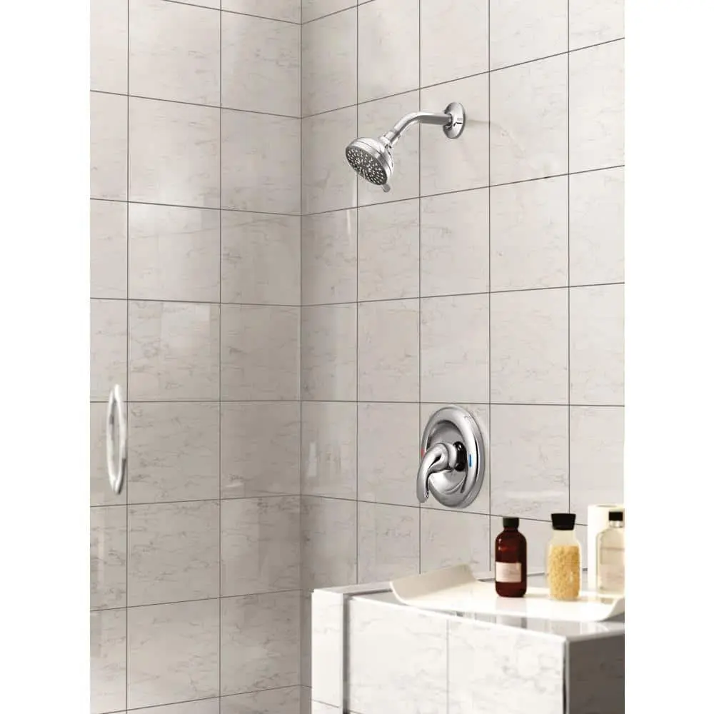 The MOEN Adler 1-Handle Tub and Shower Faucet in Chrome combines style and practicality. Choose between a lever or knob handle, and enjoy the polished chrome finish that fits any bathroom. The Posi-Temp pressure-balancing valve maintains consistent water pressure and temperature for comfort.