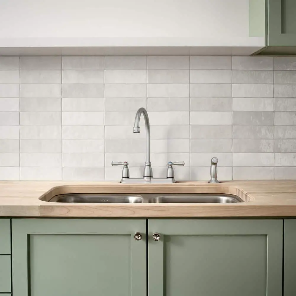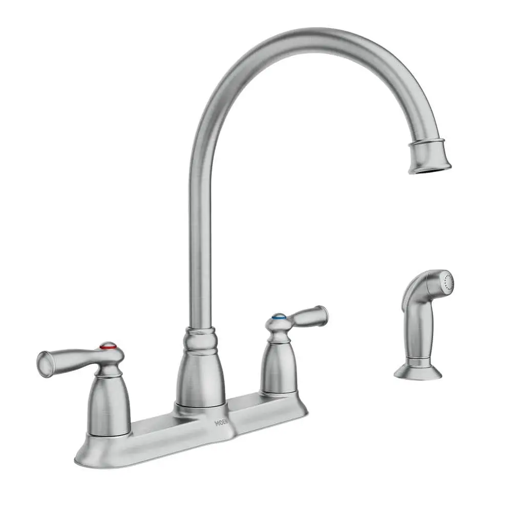 The MOEN Banbury 2-Handle Kitchen Faucet is an ideal choice for a busy kitchen, featuring a classic deck-mount design. Its Spot Resist finish helps prevent fingerprints and water spots, keeping the faucet looking pristine and easy to clean. The high-arc spout provides ample clearance for washing large pots and pans, while the included side sprayer offers added convenience for rinsing dishes and cleaning the sink.