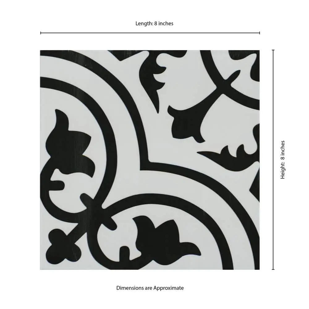 The MSI Amantus Matte Porcelain Encaustic Tile offers a bold and artistic look with its decorative encaustic pattern in a sleek matte porcelain finish. Perfect for both floors and walls, it suits a variety of residential and commercial spaces. This tile is durable and low maintenance, being both scratch and stain-resistant, and easy to clean. Each tile measures 8" x 8", ideal for creating intricate designs, and a case covers 5.16 sq. ft. The timeless encaustic pattern brings vintage charm to modern interiors, enhancing any space with style and durability.