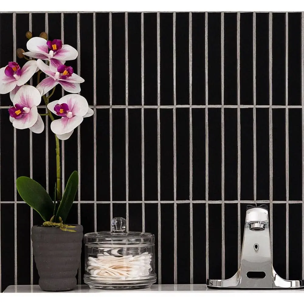The MSI Black Matte Stacked 12 in. x 12 in. Porcelain Mesh-Mounted Mosaic Wall Tile features a sleek, modern black matte stacked design, perfect for creating bold, contemporary spaces. Made from durable porcelain, this tile offers long-lasting performance and easy maintenance. Mesh-mounted for simple installation and cutting, it is ideal for walls, backsplashes, and accent areas. Easy to clean and maintain, it’s suitable for both residential and commercial use, making it a versatile and stylish choice for any project.