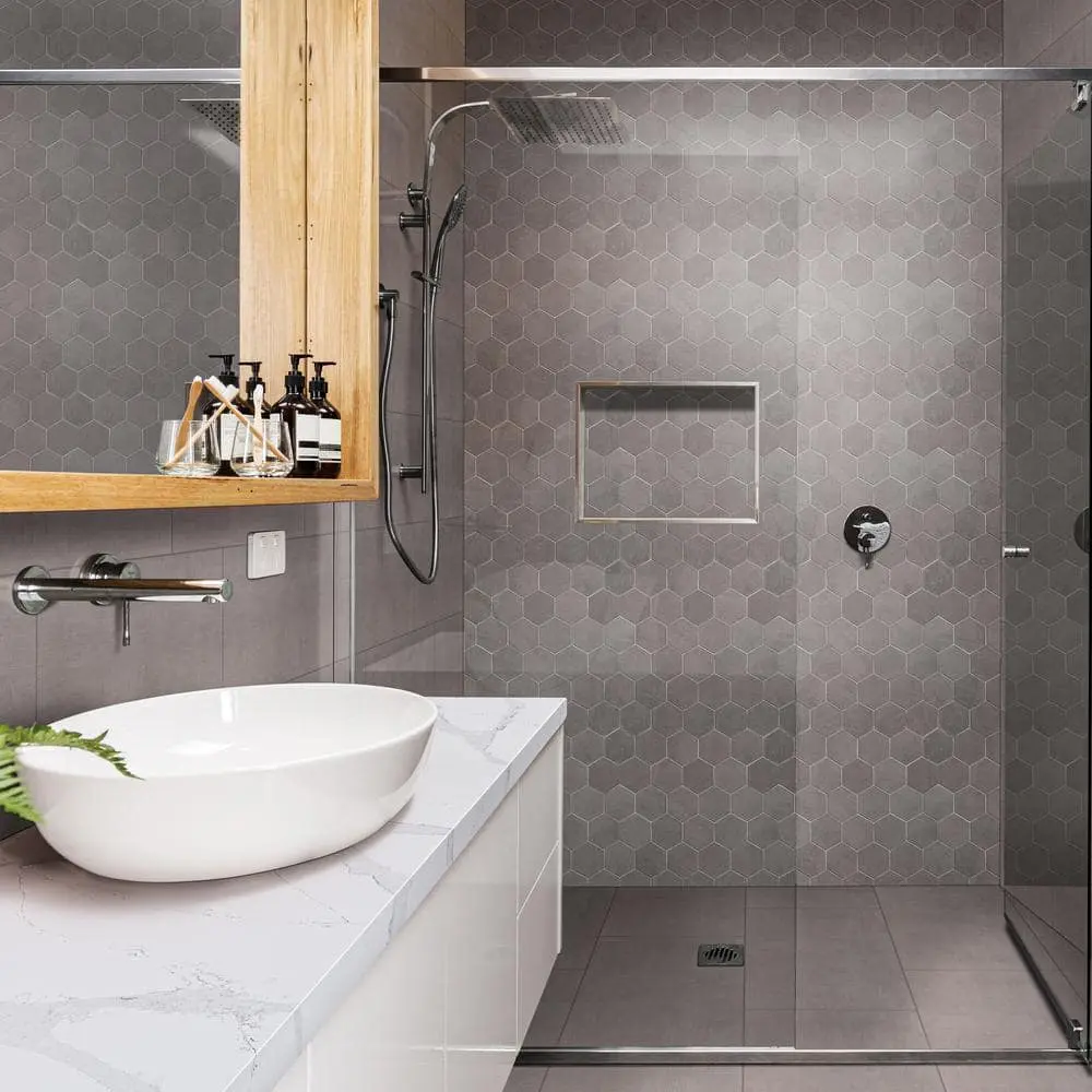 The MSI Cementino Hexagon Tile brings a modern touch with its matte porcelain material, designed to mimic the look of contemporary cement. Each tile measures 11 in. x 13 in., covering 0.86 sq. ft. per tile, and features a unique hexagonal shape that adds a stylish flair to any room. Perfect for both floor and wall applications, this tile offers versatility and durability. Its scratch, stain, and water-resistant properties ensure long-lasting performance, while the matte finish gives a sleek, modern aesthetic to your space.