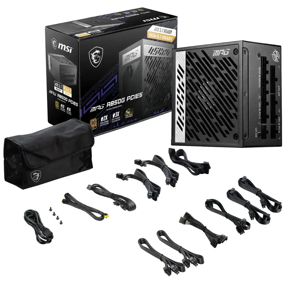 The MPG gaming power supply is designed to support the latest NVIDIA GeForce RTX 4000 Series and AMD GPUs, ensuring top-tier gaming performance. With an 80+ Gold certification, it offers high efficiency, providing long-term reliability for your gaming system. The fully modular design allows you to use only the cables you need, reducing clutter and improving cable management. Its sleek, flat black design enhances the aesthetics of your build, and any excess cables can be neatly stored in the included cable bag. Available in both 160mm and 150mm widths, the MPG gaming power supply fits comfortably in a variety of PC chassis, ensuring an organized and efficient setup for optimal cable management.