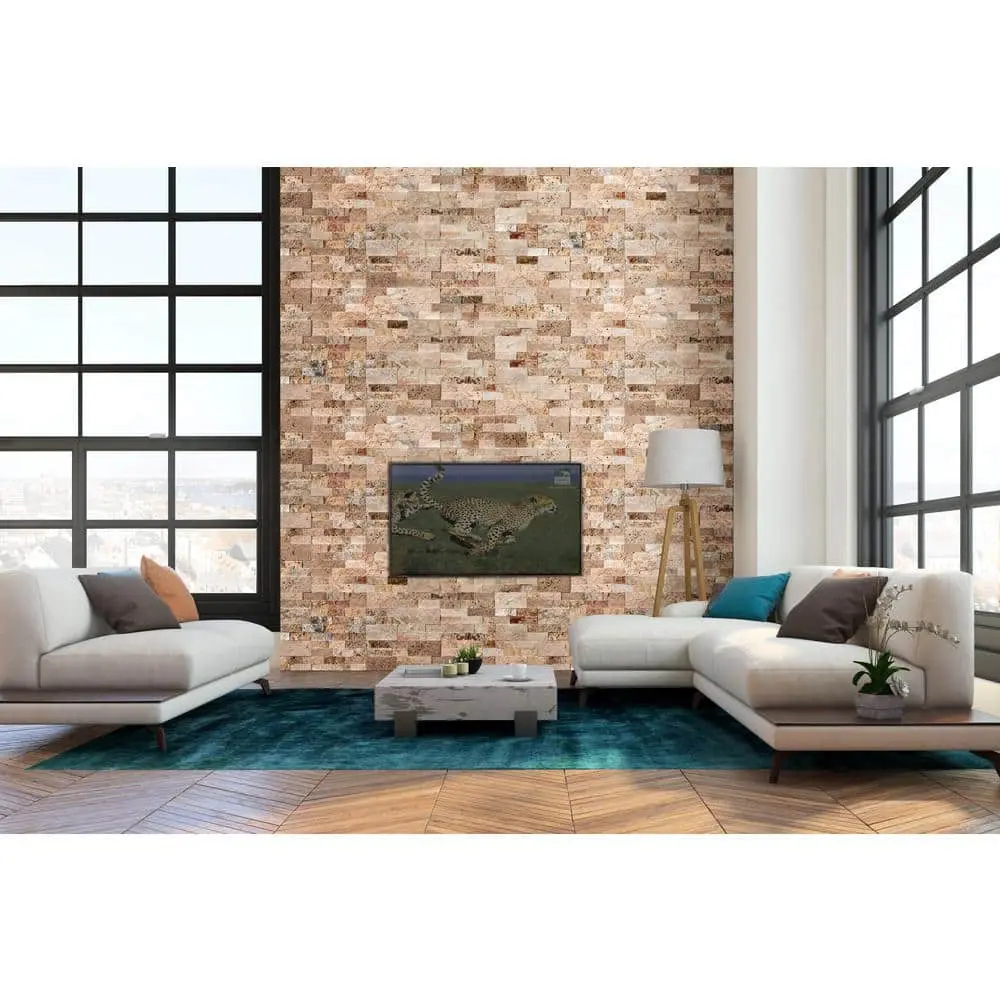 The MSI Picasso Ledger Panel Tile showcases a unique splitface travertine design, featuring varying textures that create a natural and rustic aesthetic. The 6 in. x 24 in. size offers large, rectangular panels for easy installation and a visually striking look. Its splitface surface adds depth and dimension, making it an excellent choice for accent walls. Crafted from durable travertine, this tile ensures long-lasting performance. Perfect for both indoor and outdoor applications, each case covers 6 sq. ft., making it ideal for smaller projects or accent areas