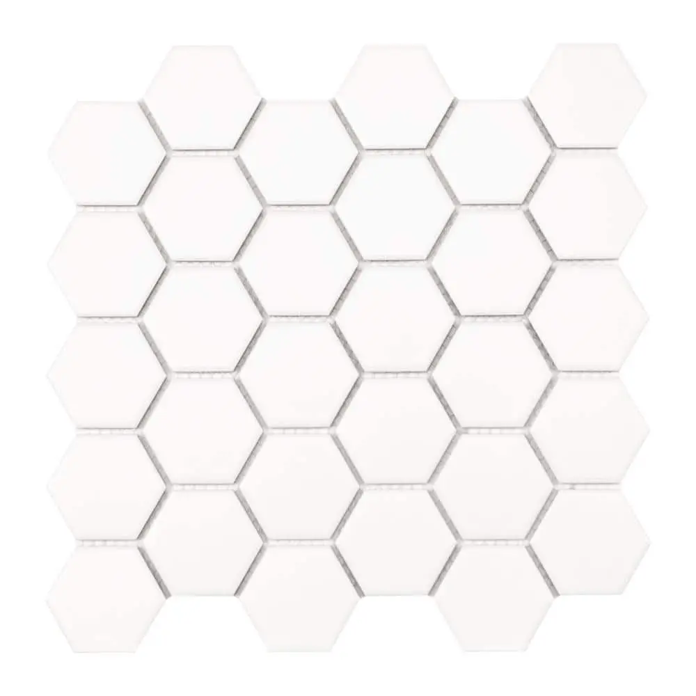 Add a touch of modern elegance to your home with the MSI White 2 in. Hexagon 11 in. x 11 in. Matte Porcelain Mesh-Mounted Floor and Wall Mosaic Tile. This versatile tile is perfect for both floor and wall applications, offering a clean, contemporary look. Crafted from durable, matte porcelain, these hexagonal tiles are built to last. The stylish hexagon shape adds a unique design element, allowing you to create stunning patterns. The easy install mesh-mounted design simplifies the tiling process. Each sheet covers 0.81 square feet