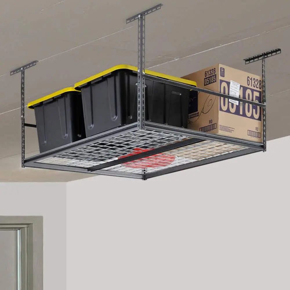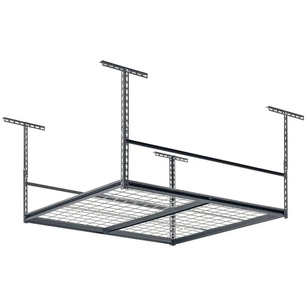 The Muscle Rack Silver Vein Heavy-Duty Steel Overhead Garage Storage Ceiling Rack with Wire Deck is designed to help you maximize your garage space. With dimensions of 47 in. W x 28 in. H x 47 in. D, this sturdy rack can support up to 600 lbs of evenly distributed weight. Made from heavy-duty steel, it ensures durability and strength, while the wire deck design provides ventilation for your stored items. The silver vein powder-coat finish offers a sleek and rust-resistant look, making it both functional and stylish. Easy to install with included hardware, this rack is perfect for organizing bulky items and freeing up valuable floor space in your garage.