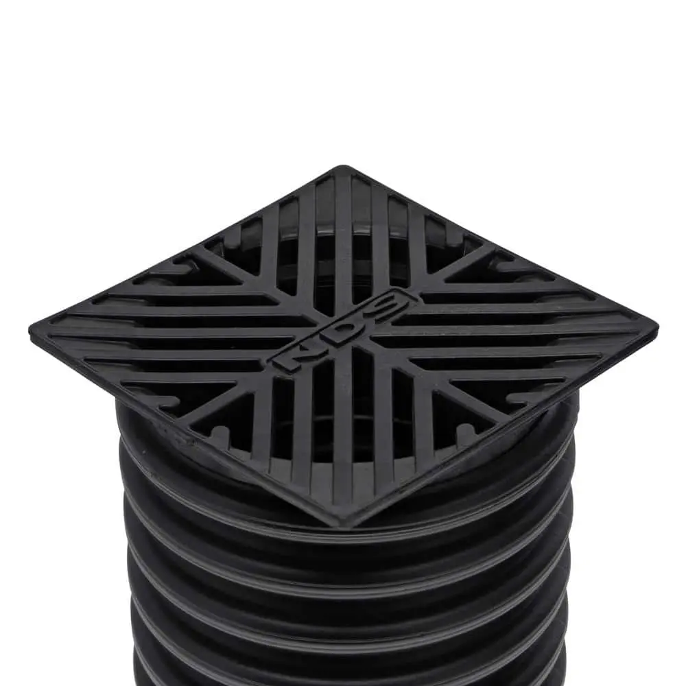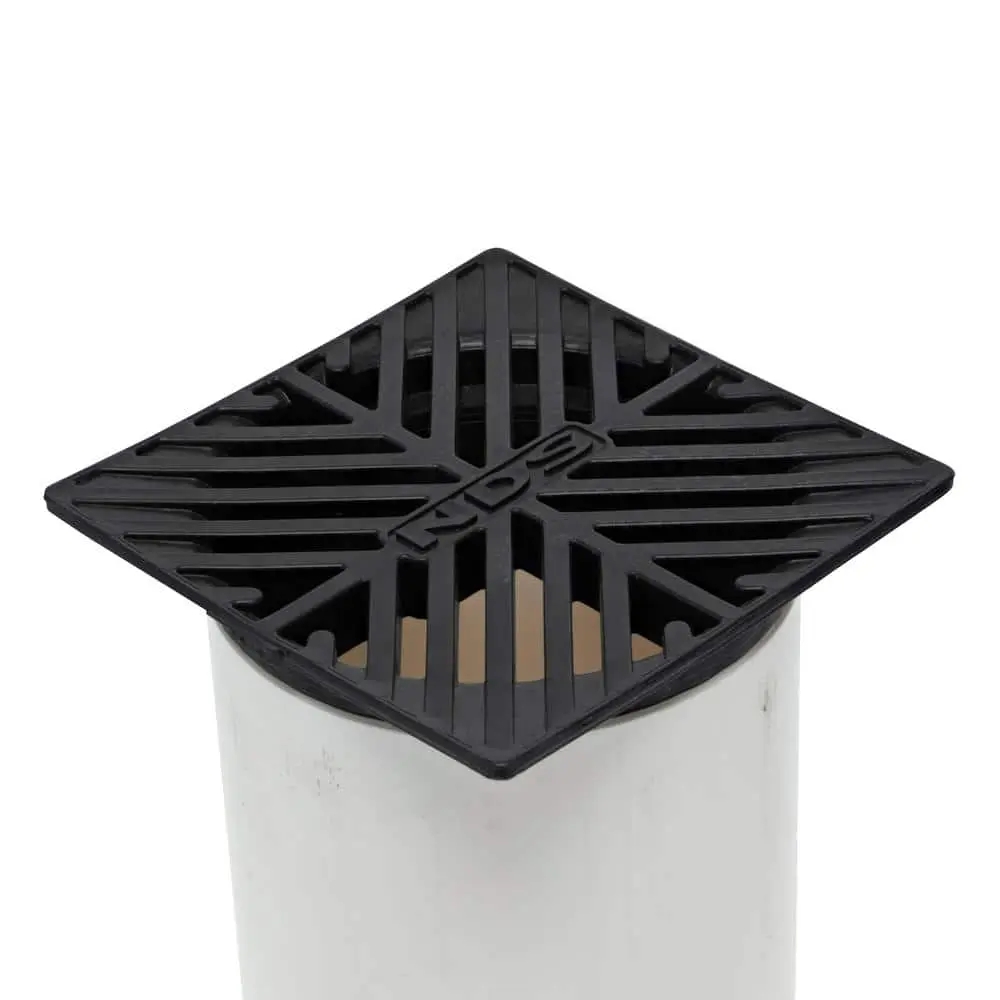 Keep your drainage system working efficiently with the 5 in. square drain grate, designed to prevent leaves and debris from clogging your pipes. Ideal for handling light stormwater flows from small lawns, landscaped areas, walkways, and patios, this grate fits directly over the drain pipe. With an open surface area of 4.3 sq. in. and a 13 GPM flow rate, it provides optimal drainage for various landscaped areas. This grate connects securely to 4 in. sewer and drain pipes, fittings, single-wall corrugated pipes, and triple-wall pipes for a soil-tight seal. Made from durable polyethylene, it is treated with UV inhibitors to resist fading and cracking. ADA Compliant and heel-proof, it’s built to withstand the elements and ensure your system operates smoothly. As part of a complete drainage setup, the grate blocks debris while allowing water to flow into pipes, which then carry it to a discharge point like a pop-up emitter, dry well, or infiltration trench. Start your drainage project today with the free NDS Home Drainage Center tool at ndspro.com/home-drainage. NDS, established in 1972, is the trusted choice of professionals and a leader in stormwater management solutions.