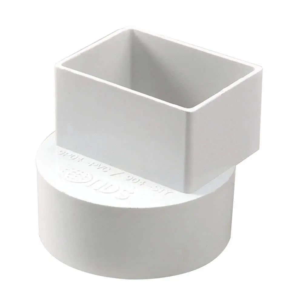 Product Overview: The HIPS Offset Downspout Adapter is designed to connect and align a 2 in. x 3 in. rain gutter downspout to a 4 in. Sewer and Drain (S&D) pipe. Its offset design ensures proper alignment of the drainage pipe beneath a downspout fastened against a building wall. Made from high-impact polystyrene (HIPS), this adapter offers a Downspout X Hub connection and meets ASTM standards. Ideal for non-pressurized drainage systems, it has a maximum working pressure of 5 psi. NDS provides scalable stormwater management solutions for residential, commercial, and industrial needs, along with tools, calculators, a store locator, and support through the NDS website and Stormwater Drainage mobile app.