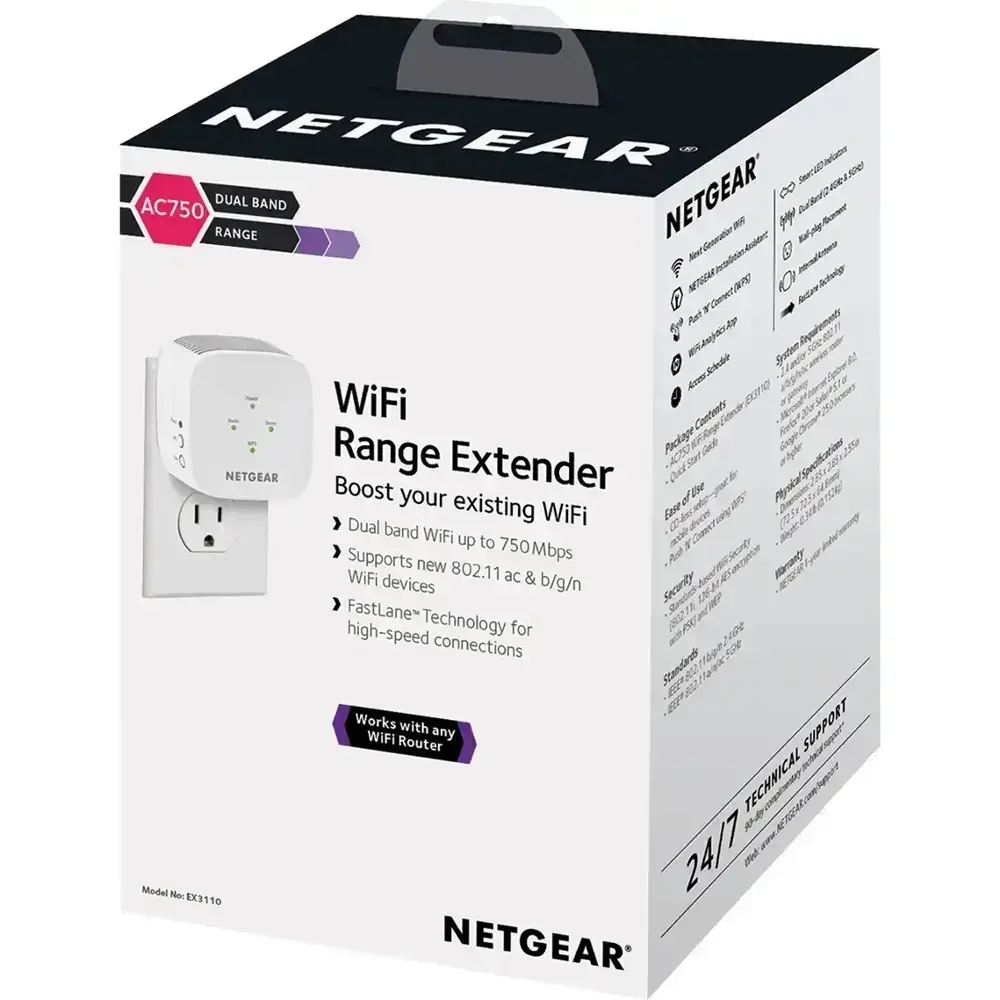 Eliminate Wi-Fi dead zones and enjoy a stronger, more reliable connection with the NETGEAR AC750 Dual-Band Wi-Fi Range Extender. Whether you're streaming HD videos, gaming, or working from home, this extender delivers speeds of up to 750 Mbps and works with any standard Wi-Fi router to enhance coverage throughout your space.