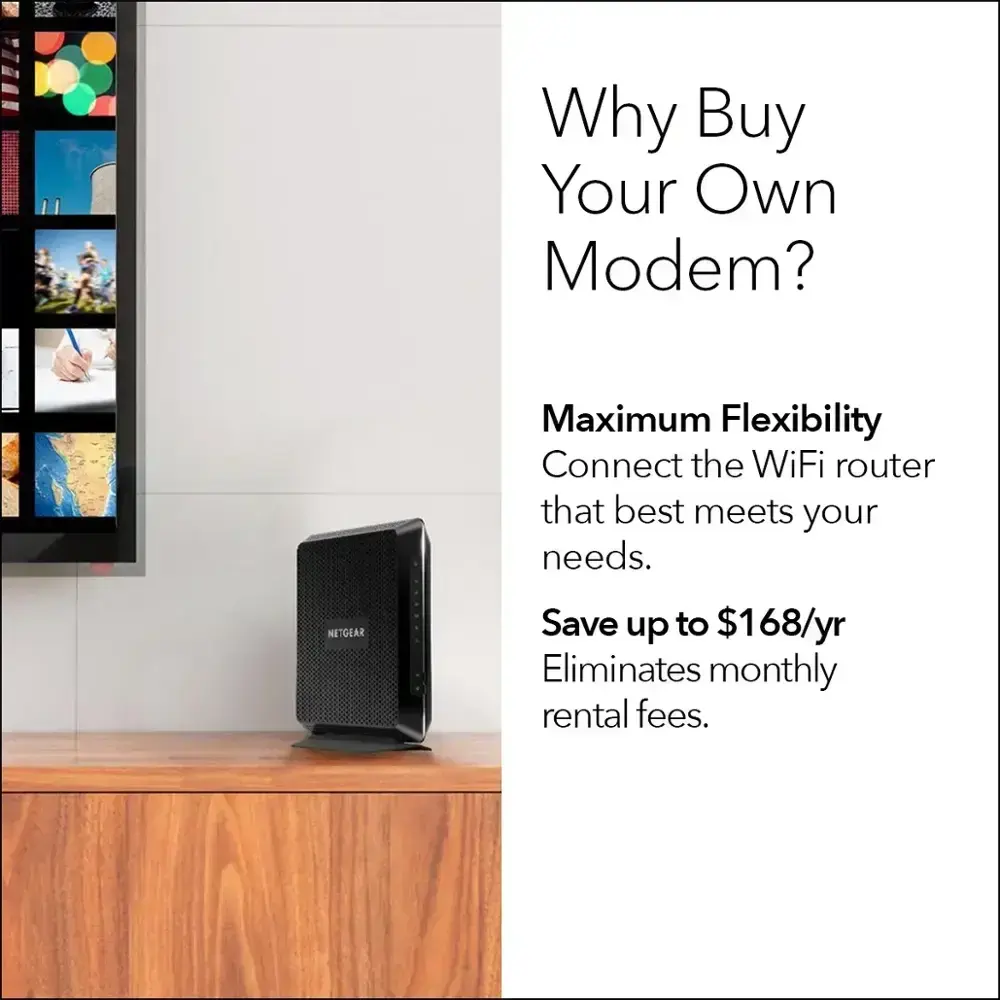 - All-in-One WiFi Solution – Optimizes WiFi coverage and delivers fast speeds, even during peak hours, with your own NETGEAR Cable Modem Router.